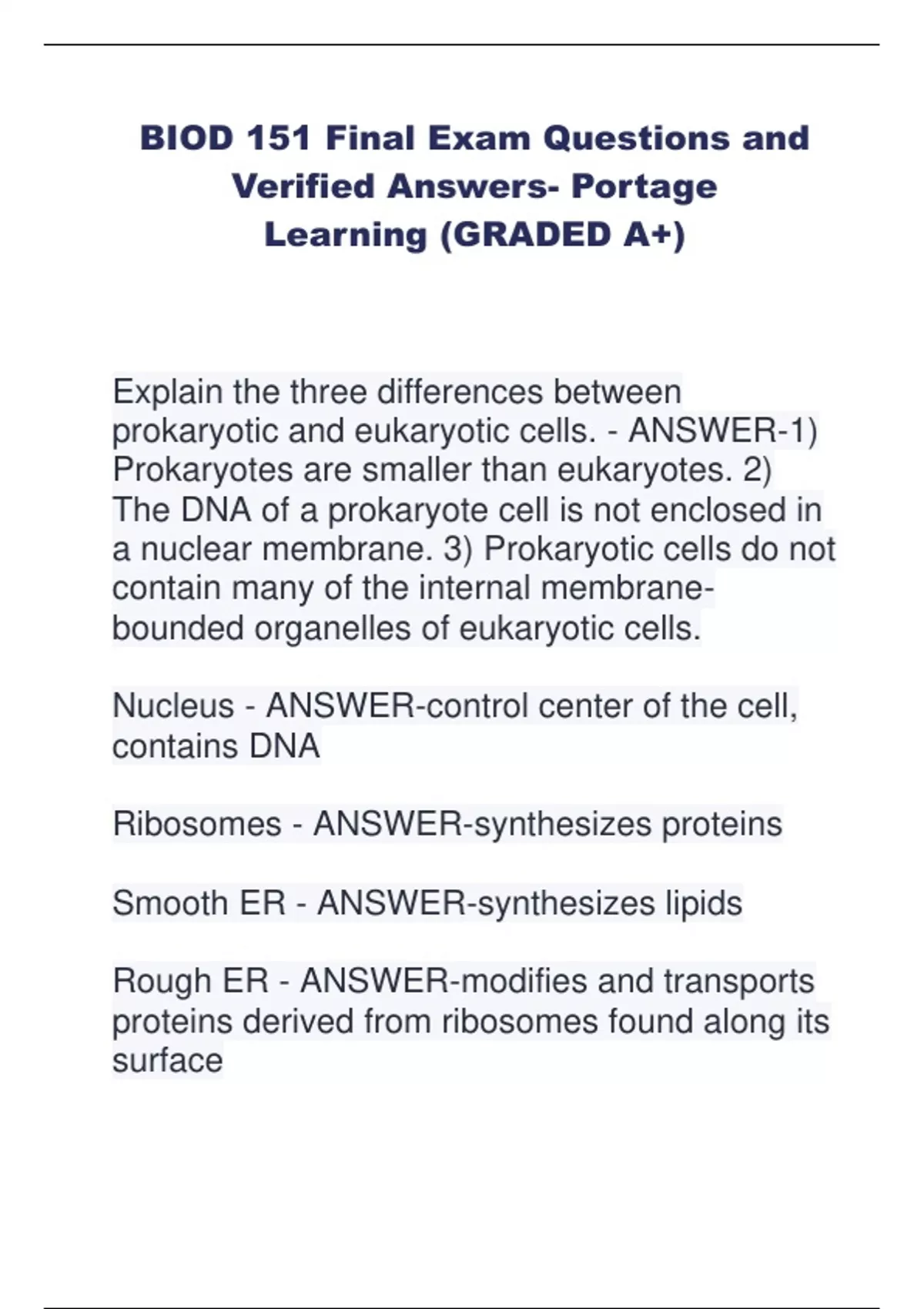 BIOD 151 Final Exam Questions and Verified Answers- Portage Learning (GRADED A+)