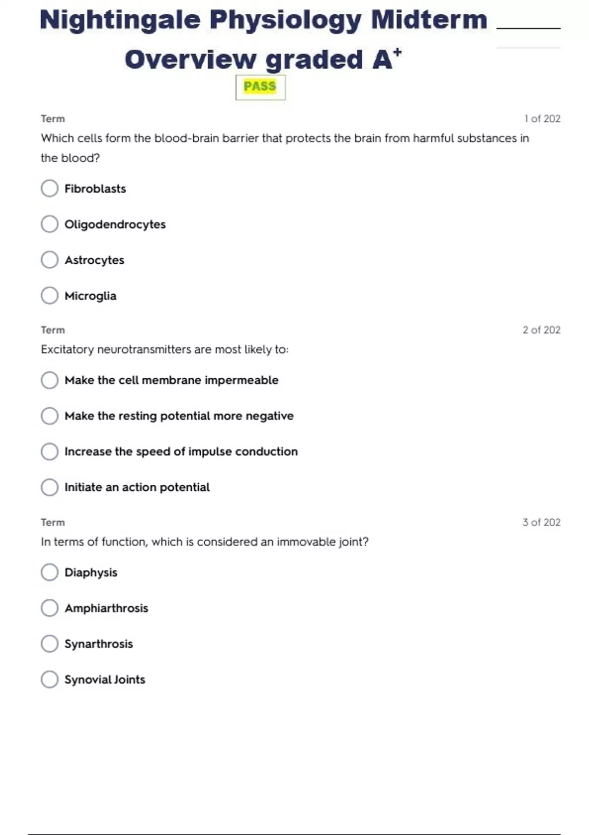 NIGHTINGALE PHYSIOLOGY MIDTERM OVERVIEW EXAM WITH COMPLETE SOLUTIONS