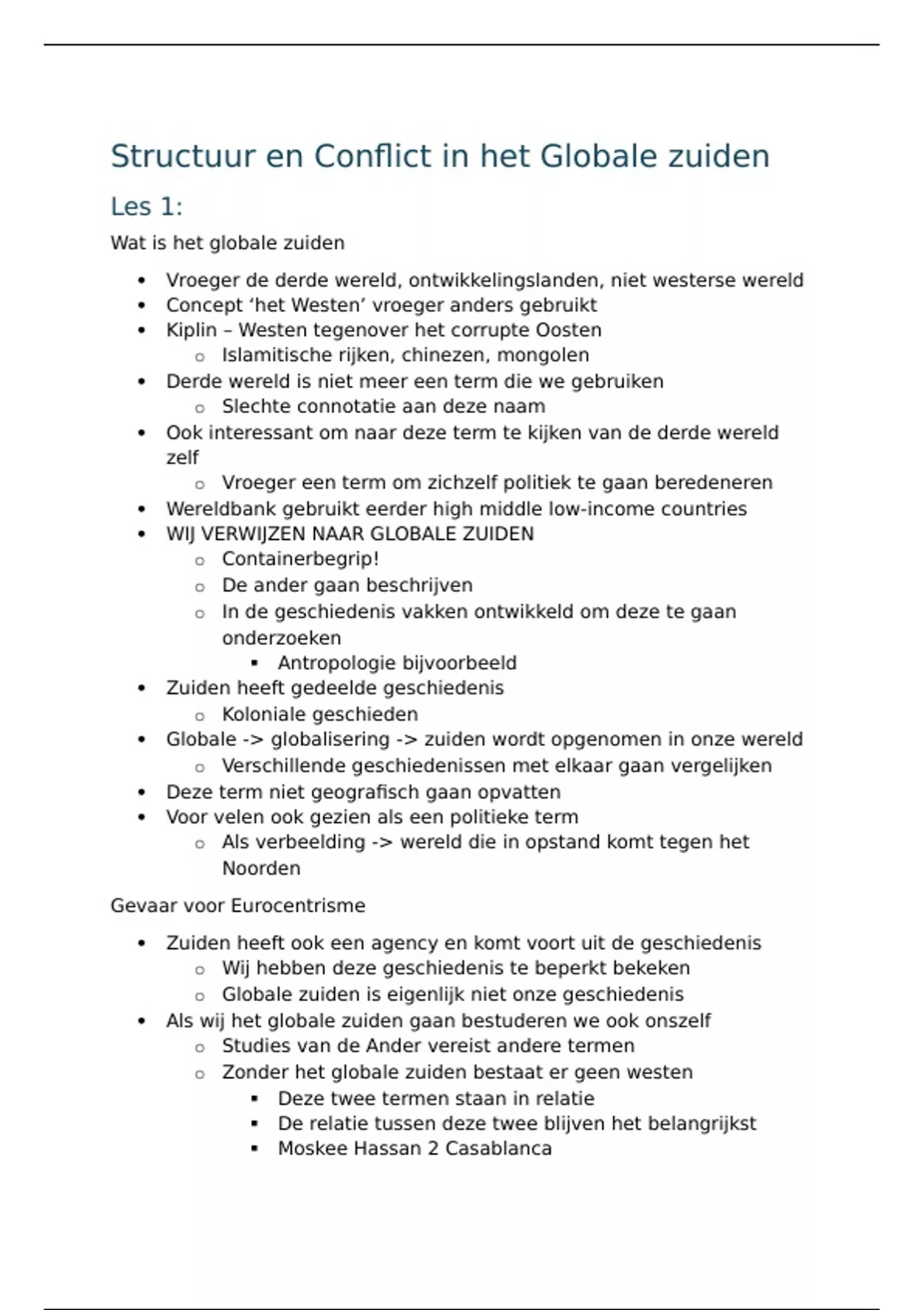 Samenvatting lessen en reader Structuur & Conflict in het Globale Zuiden 23-24