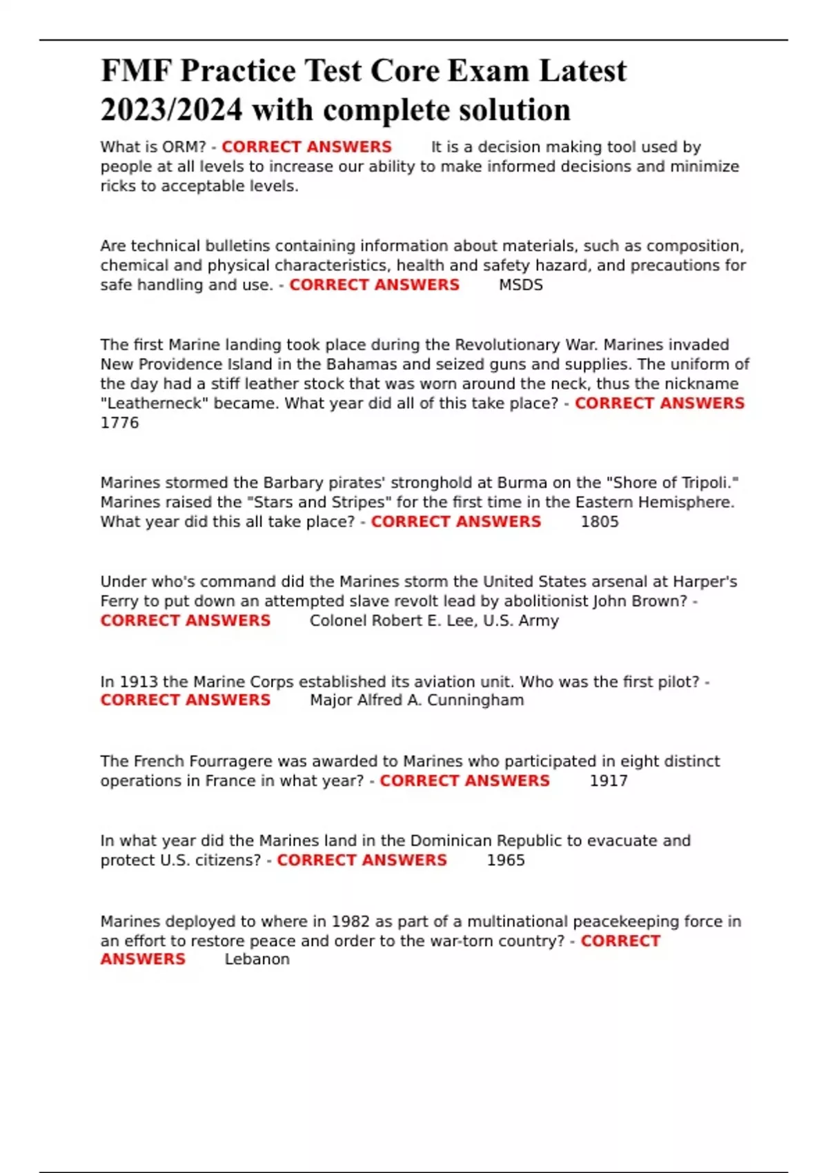 FMF Practice Test Core Exam Latest 2023/2024 with complete solution