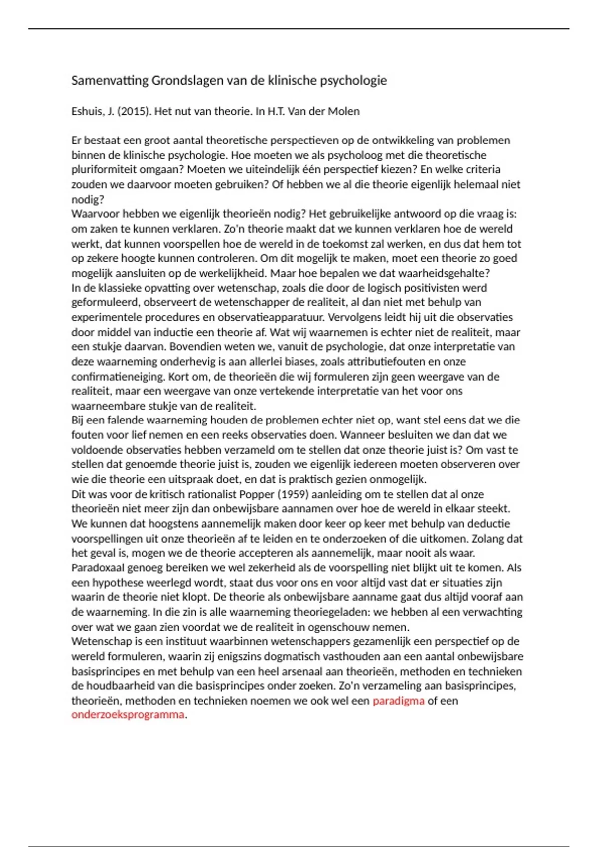 Dit heeft geleid tot de conclusie dat: Het criterium voor de wetenschappelijke status van een theorie