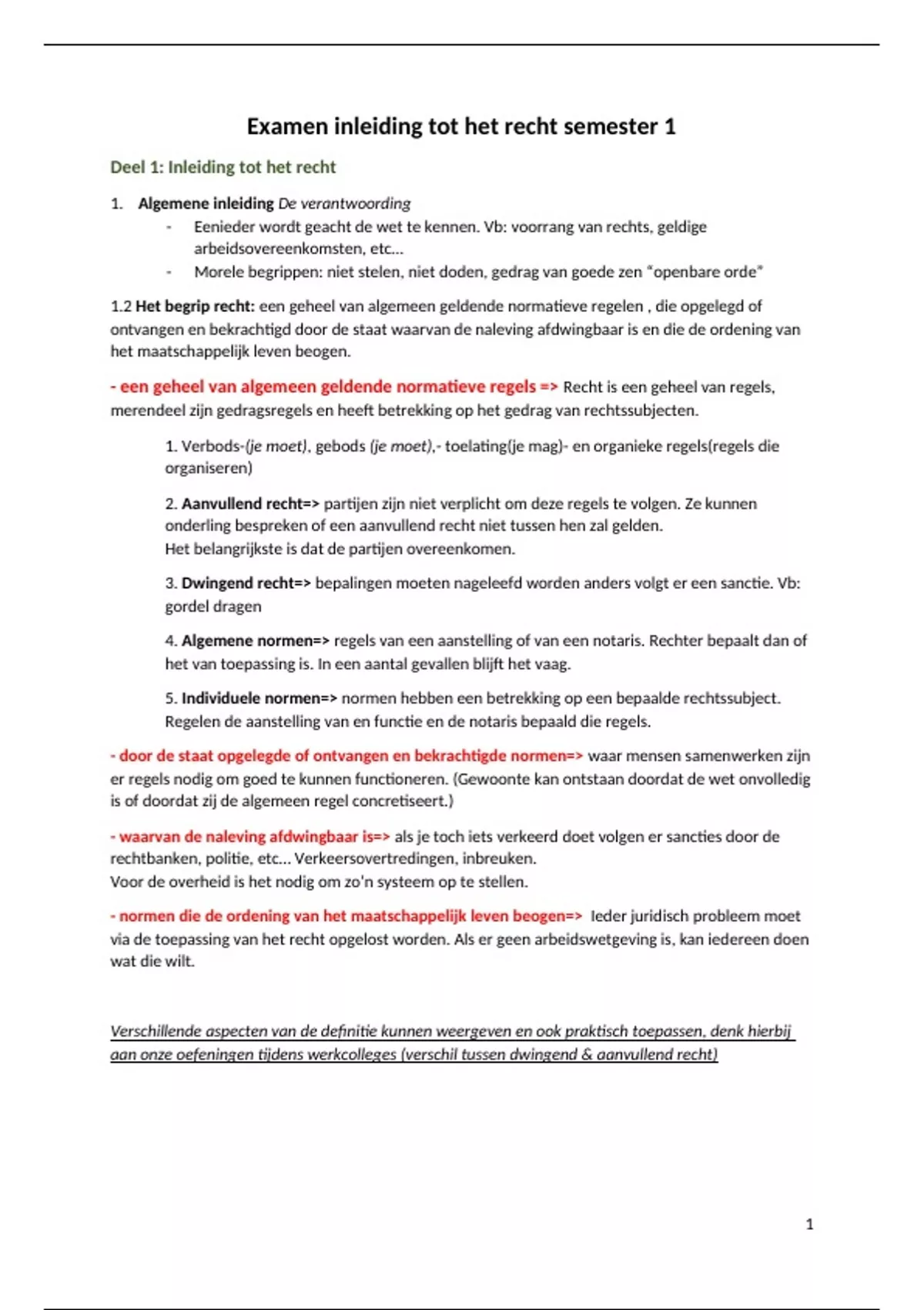 1.2 Het begrip recht: een geheel van algemeen geldende normatieve regelen , die opgelegd of