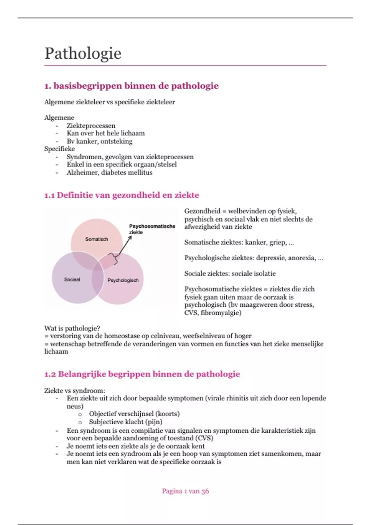 1.2 Belangrijke begrippen binnen de pathologie