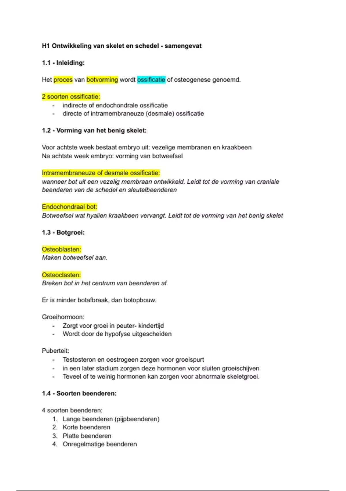 1.4 - Soorten beenderen: