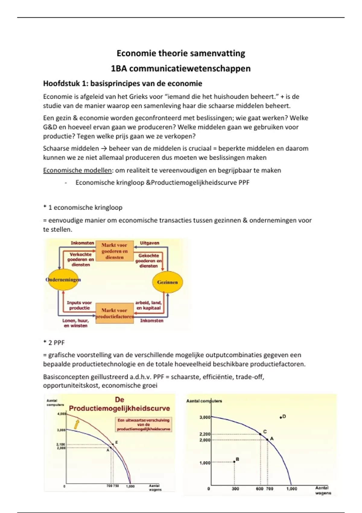 - Economische kringloop &Productiemogelijkheidscurve PPF