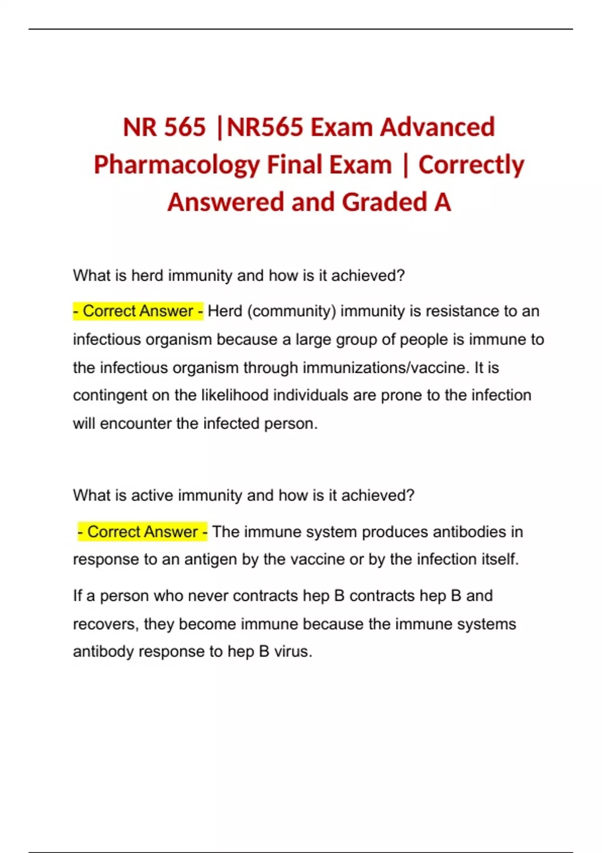 nr 565 nr565 final exam