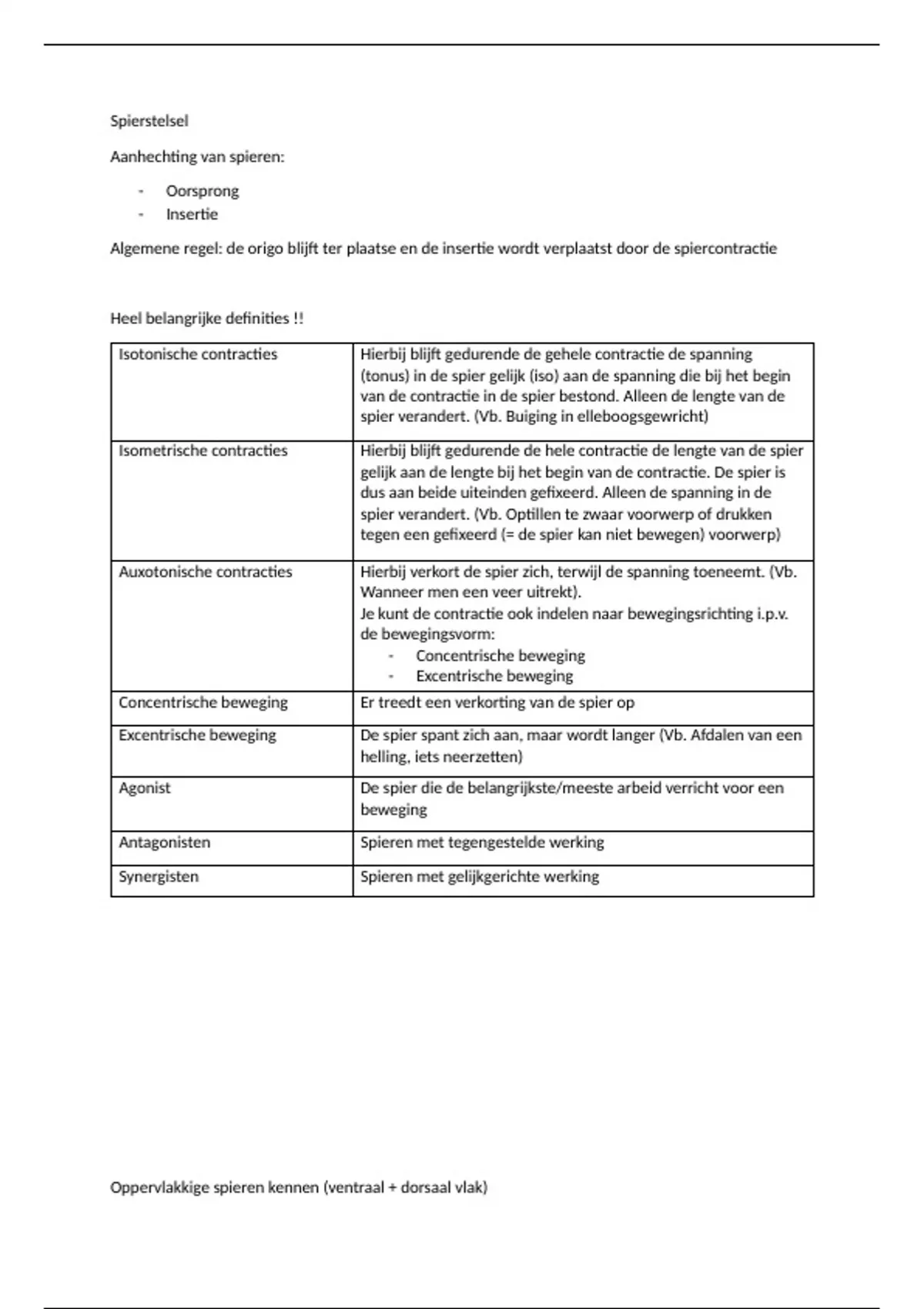Oppervlakkige spieren kennen (ventraal + dorsaal vlak)