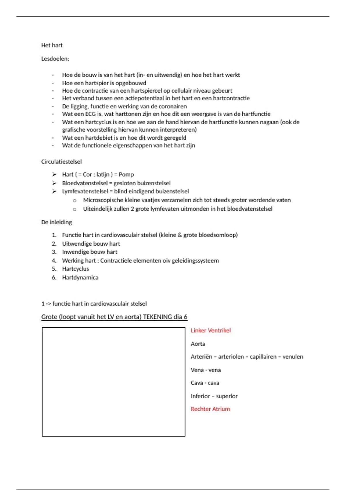 1. Functie hart in cardiovasculair stelsel (kleine & grote bloedsomloop)
