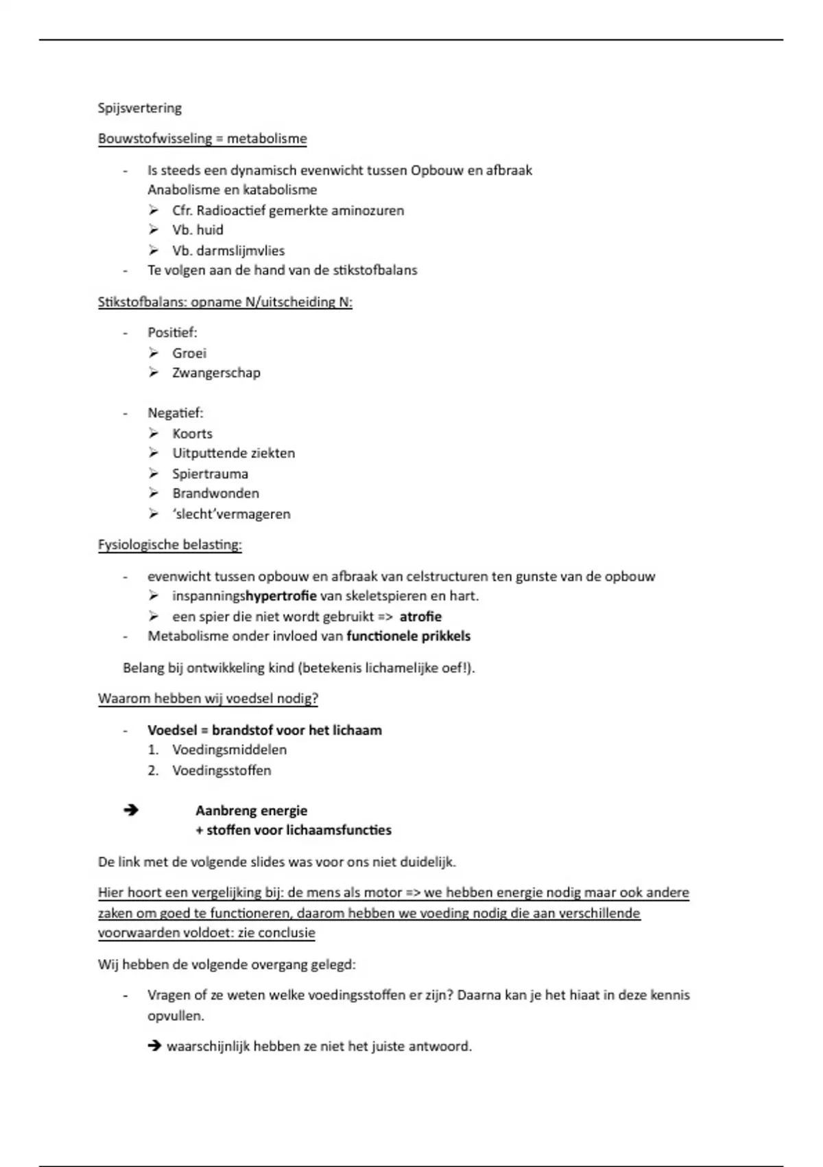 zaken om goed te functioneren, daarom hebben we voeding nodig die aan verschillende
