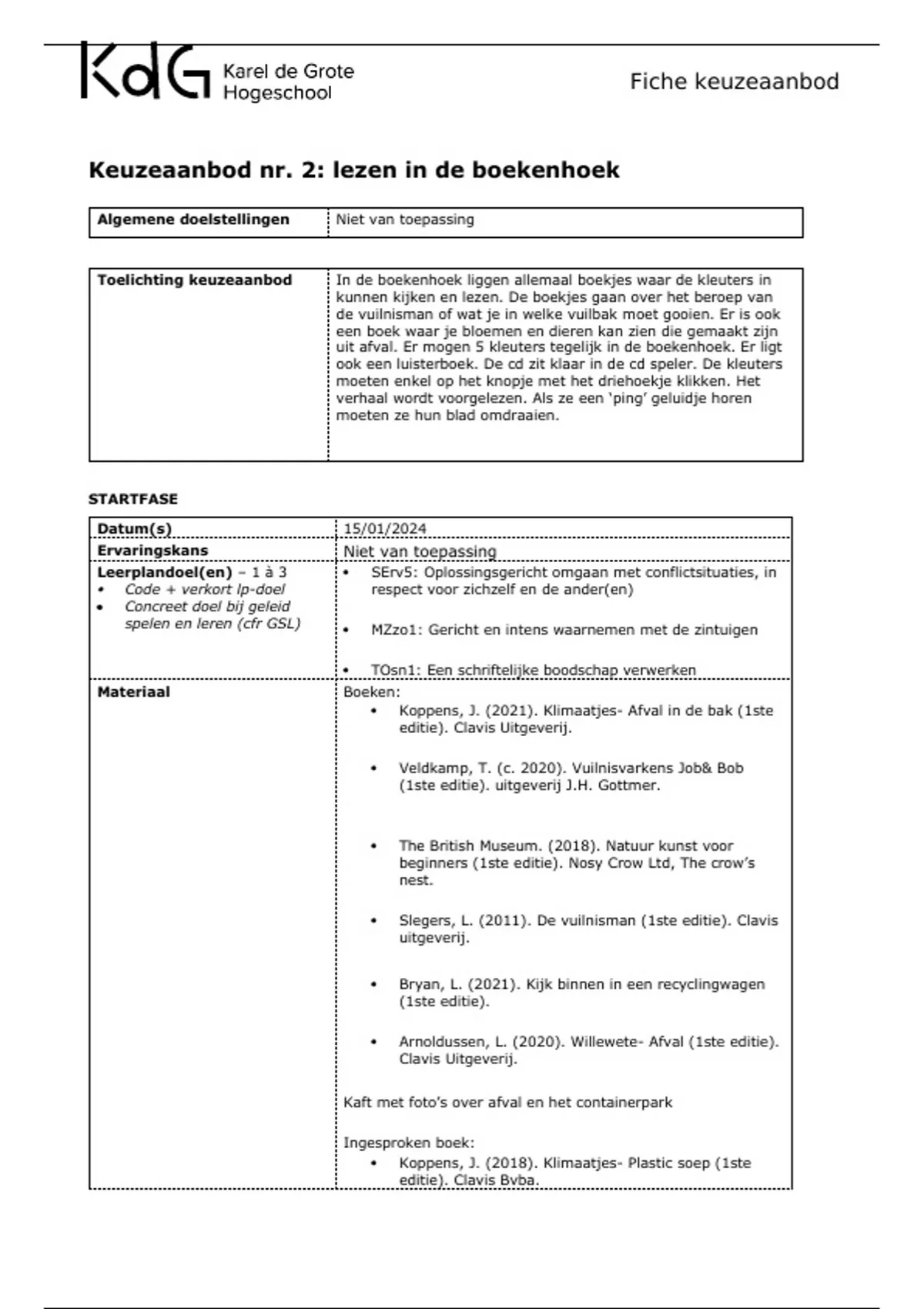 Toelichting keuzeaanbod In de boekenhoek liggen allemaal boekjes waar de kleuters in