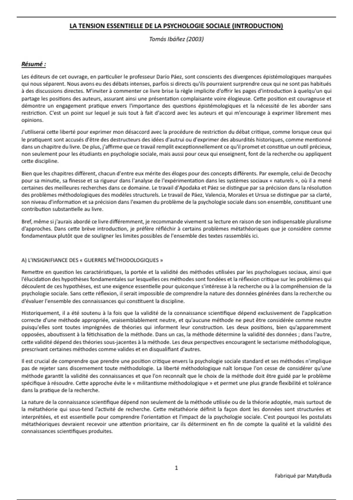 Résumé 'La Tension Essentielle de la Psychologie Sociale (Introduction)' par Ibáñez