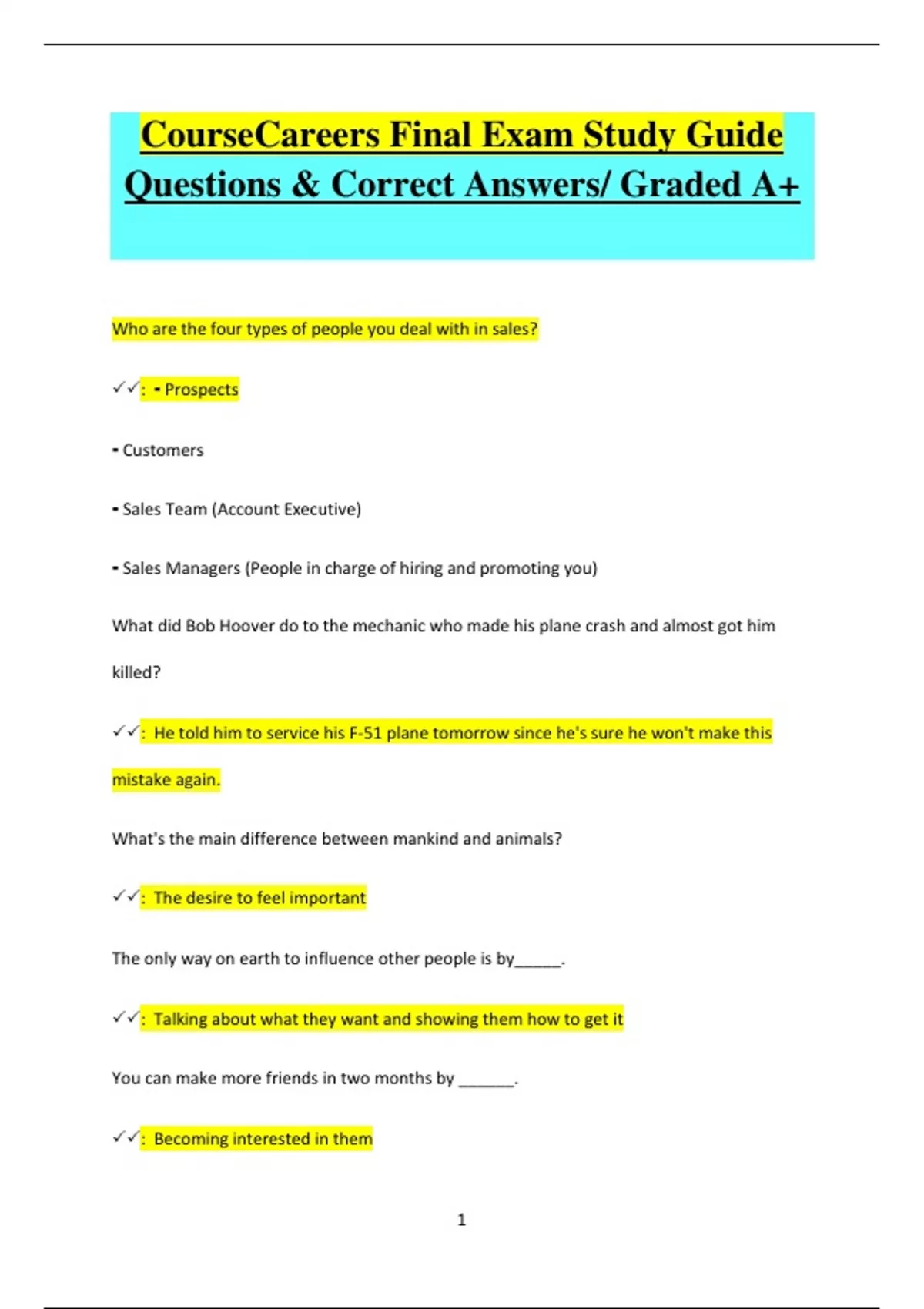 CourseCareers Final Exam Study Guide Questions & Correct Answers/ Graded A+