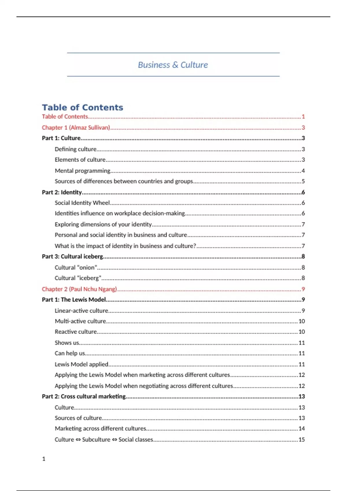 Part 1: Culture..................................................................................................................................3