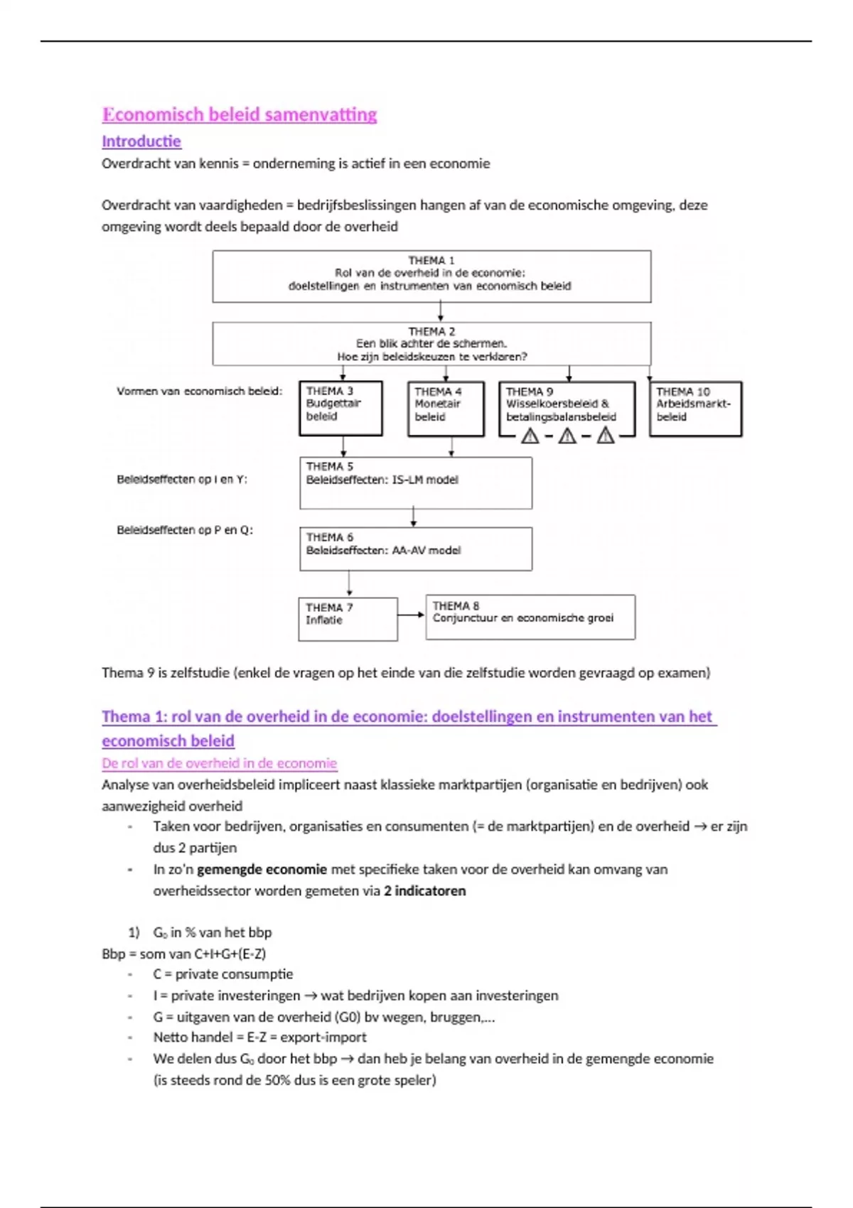 Samenvatting van het vak economisch beleid 2024, prof Benijts. Elk thema dat aan bod zal komen op het examen (ook de zelfstudie thema 9) is aanwezig in deze samenvatting. Elke les is samengevat (ik was elke les aanwezig).