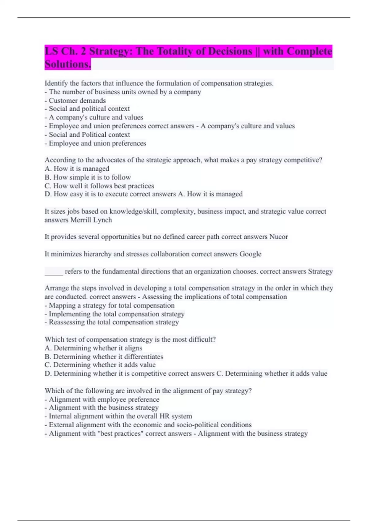 LS Ch. 2 Strategy: The Totality of Decisions || with Complete Solutions.