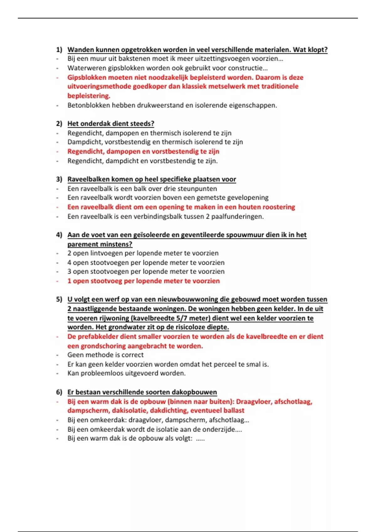 1) Wanden kunnen opgetrokken worden in veel verschillende materialen. Wat klopt?