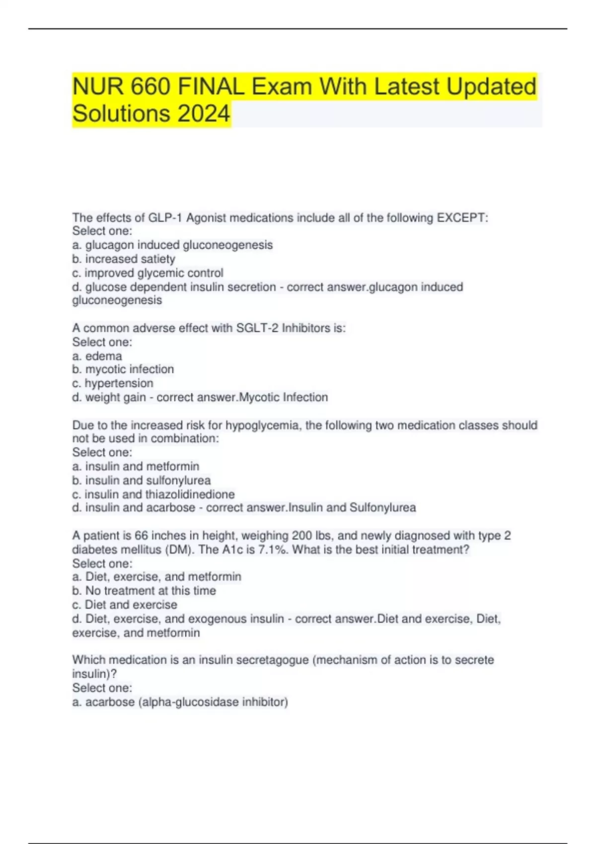 NUR 660 FINAL Exam With Latest Updated Solutions 2024