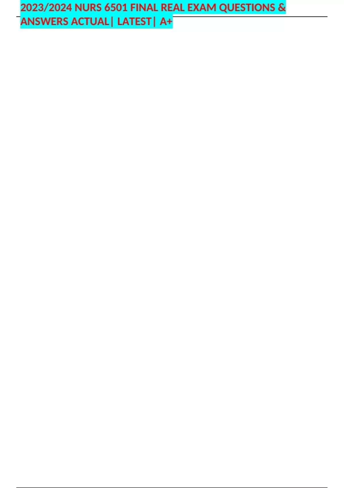 2023/2024 NURS 6501 FINAL REAL EXAM QUESTIONS & ANSWERS ACTUAL| LATEST| A+