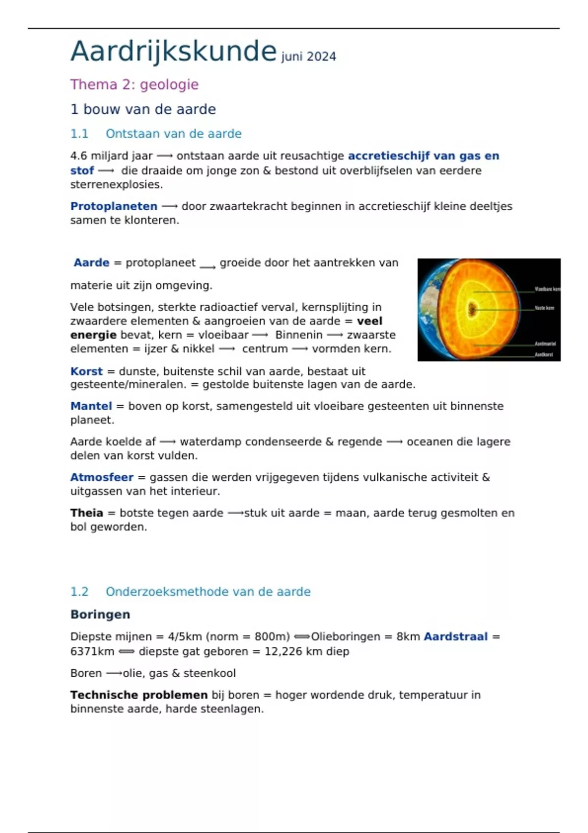 4.6 miljard jaar ⟶ ontstaan aarde uit reusachtige accretieschijf van gas en