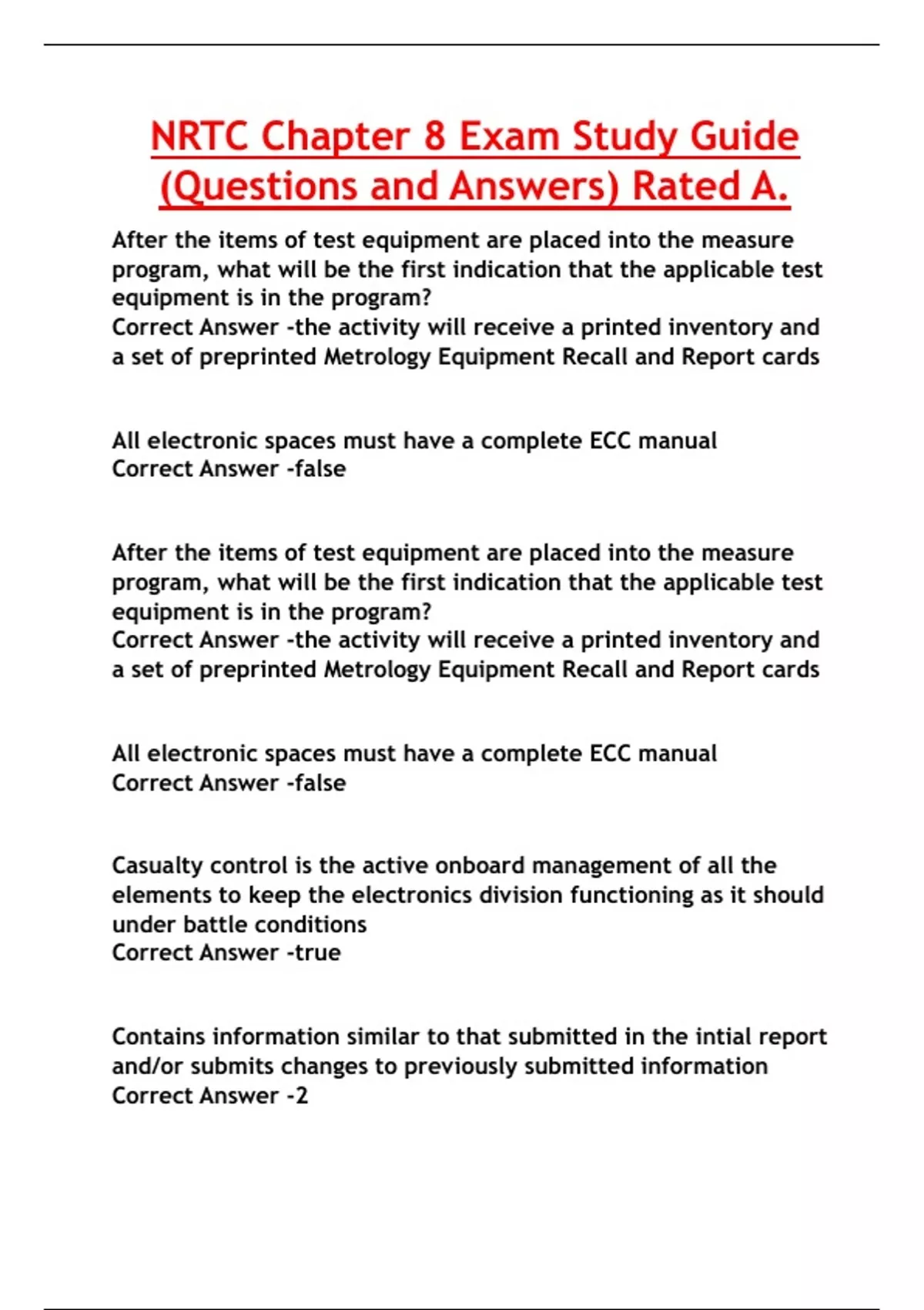 NRTC Chapter 8 Exam Study Guide (Questions and Answers) Rated A.