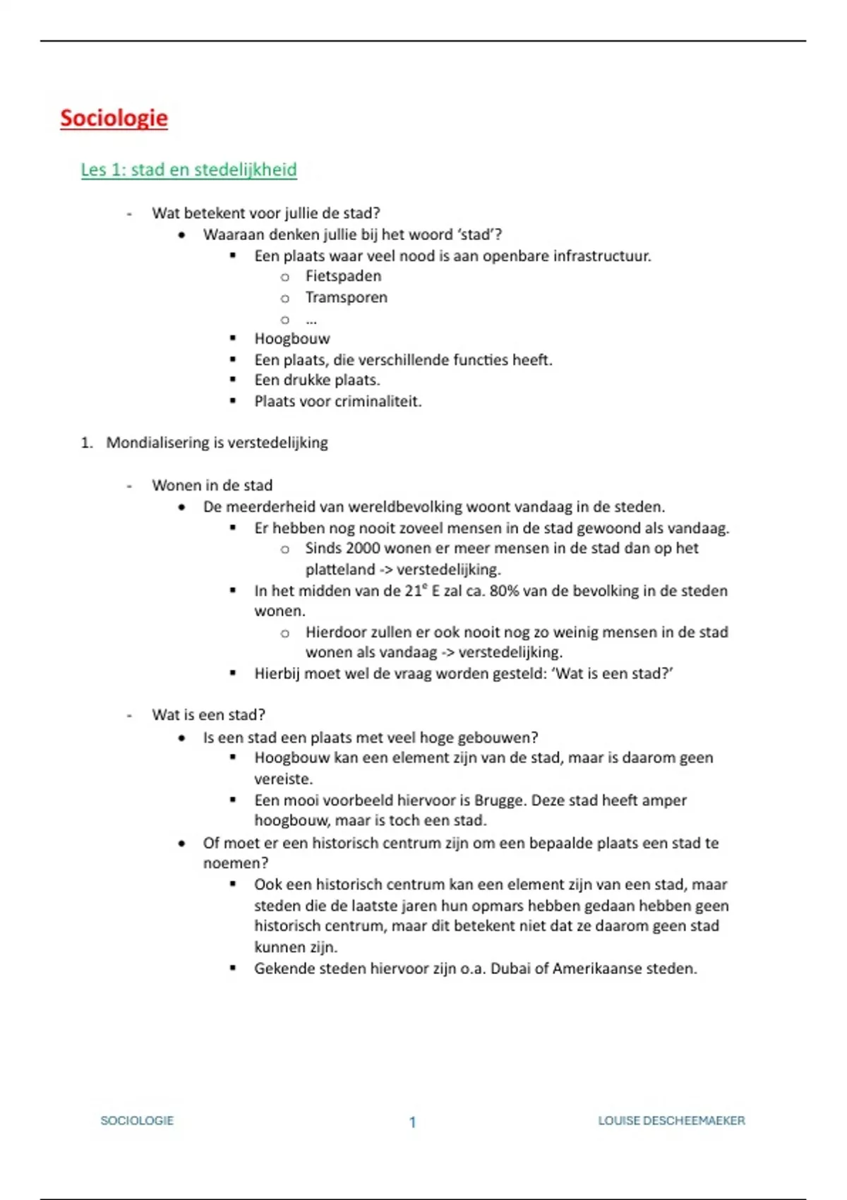 SOCIOLOGIE 1 LOUISE DESCHEEMAEKER