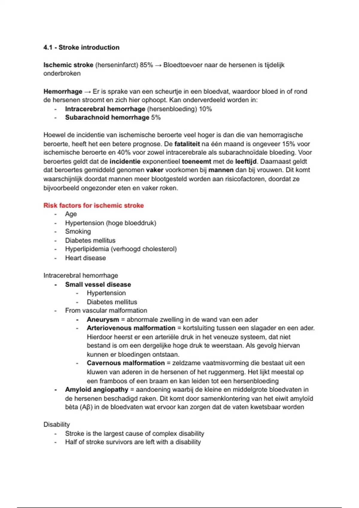 - Intracerebral hemorrhage (hersenbloeding) 10%