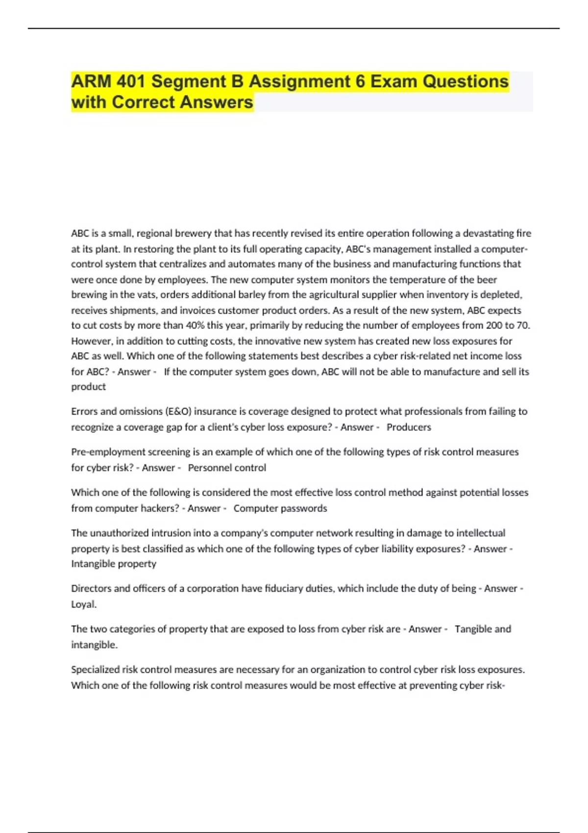 ARM 401 Segment B Assignment 6 Exam Questions with Correct Answers.