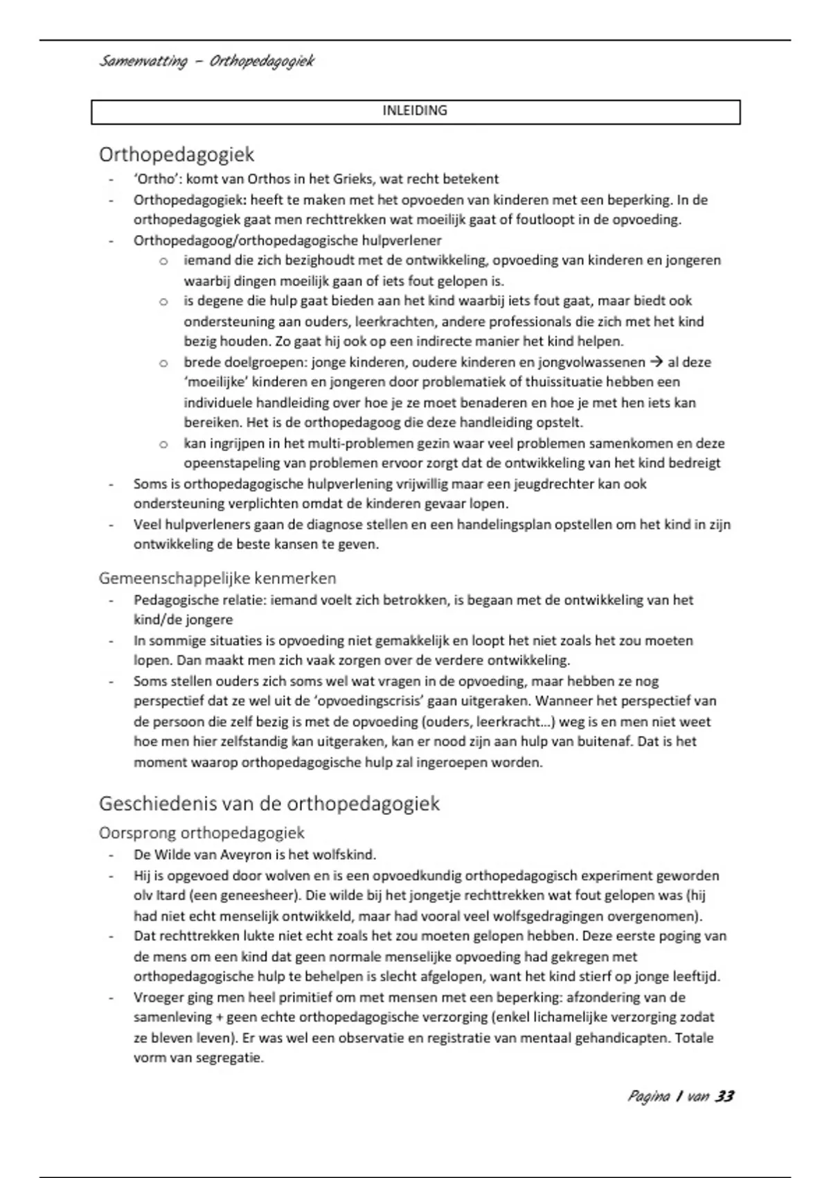 ,Samenvatting – Orthopedagogiek