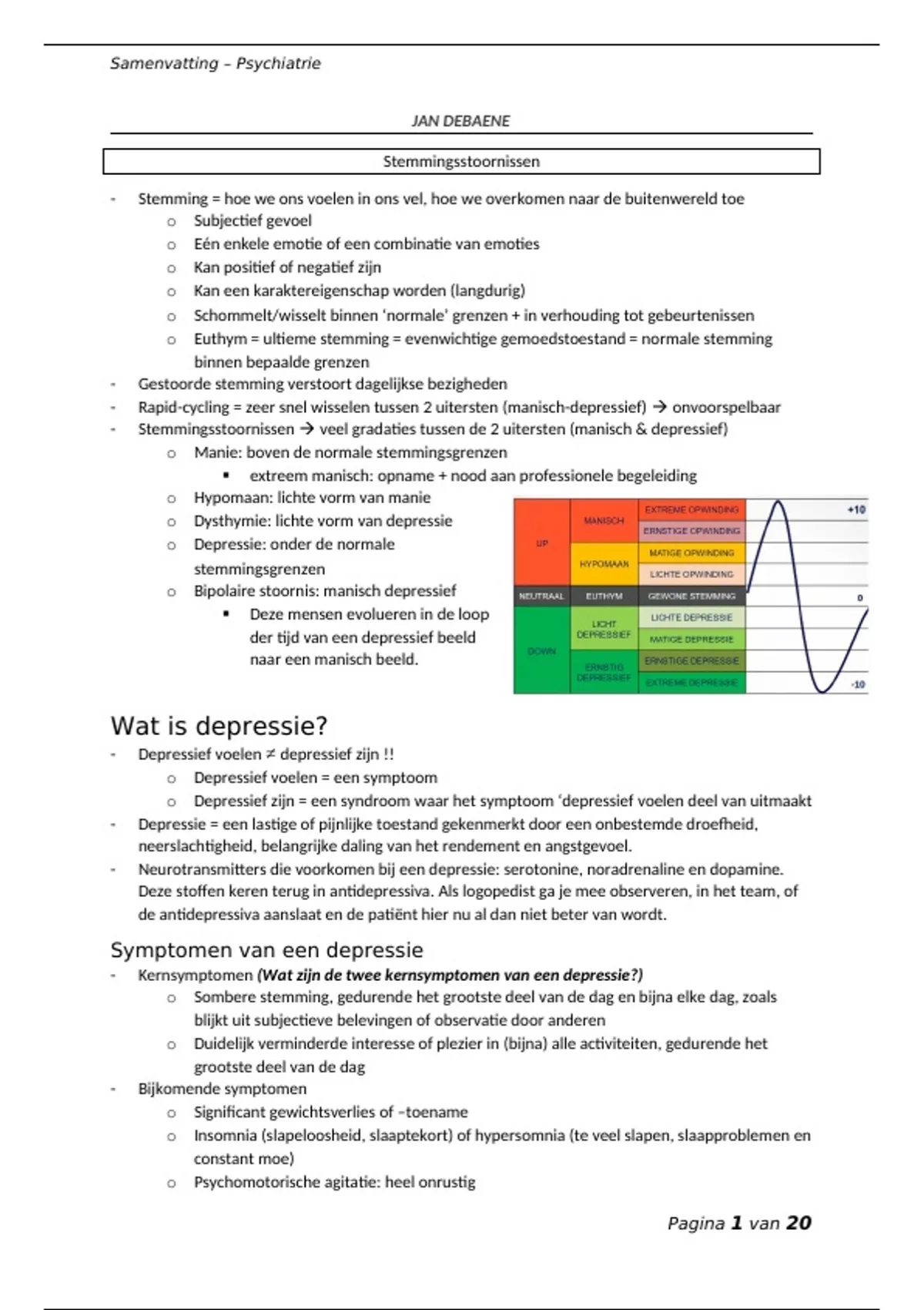 - Stemmingsstoornissen veel gradaties tussen de 2 uitersten (manisch & depressief)
