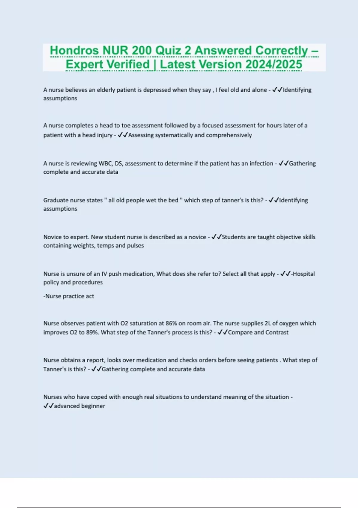 Hondros NUR 200 Quiz 2 Answered Correctly – Expert Verified | Latest Version 2024/2025