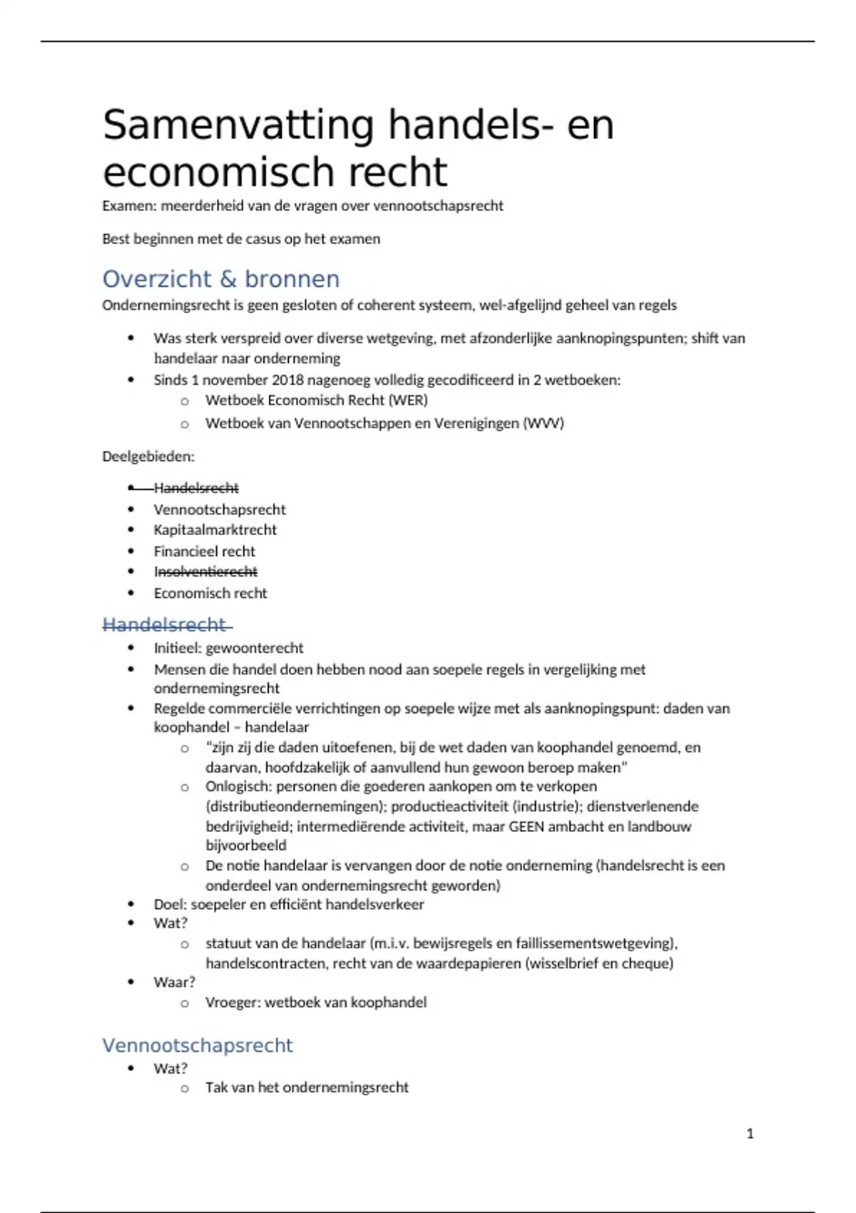 Samenvatting handels- en