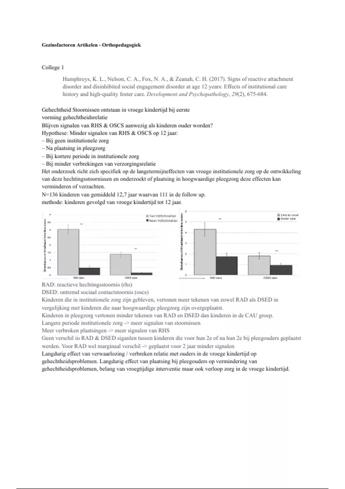 van deze hechtingsstoornissen en onderzoekt of plaatsing in hoogwaardige pleegzorg deze effecten kan