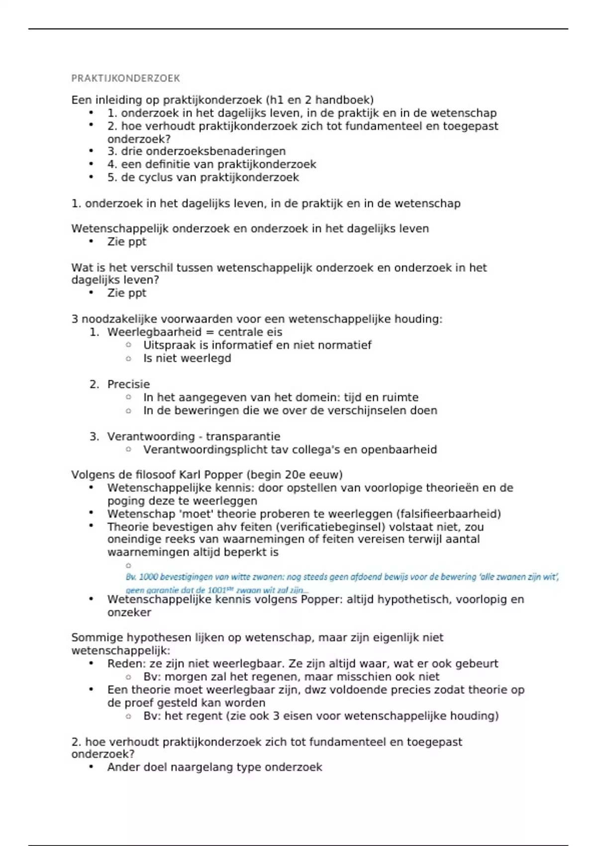 Een inleiding op praktijkonderzoek (h1 en 2 handboek)