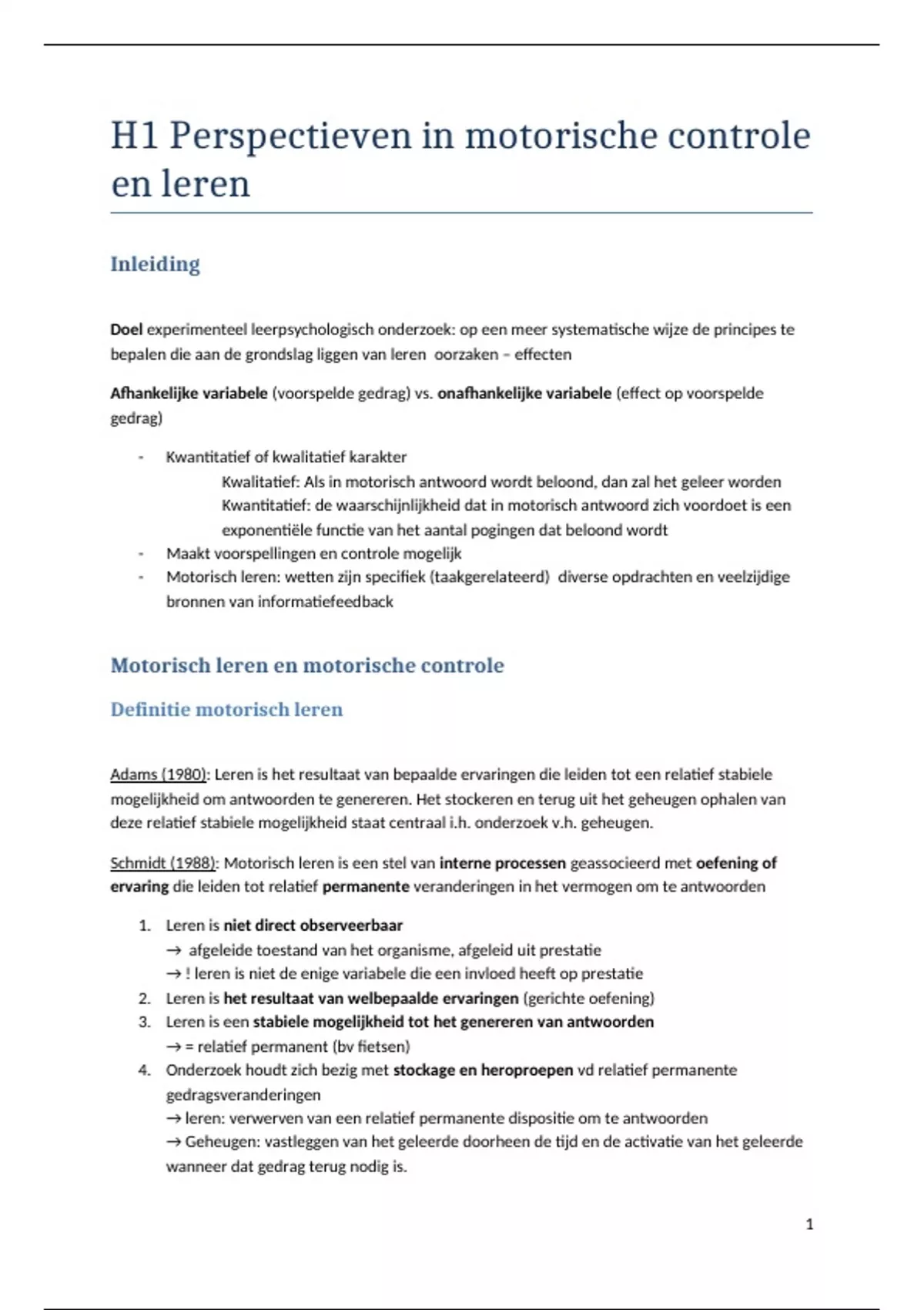 H1 Perspectieven in motorische controle
