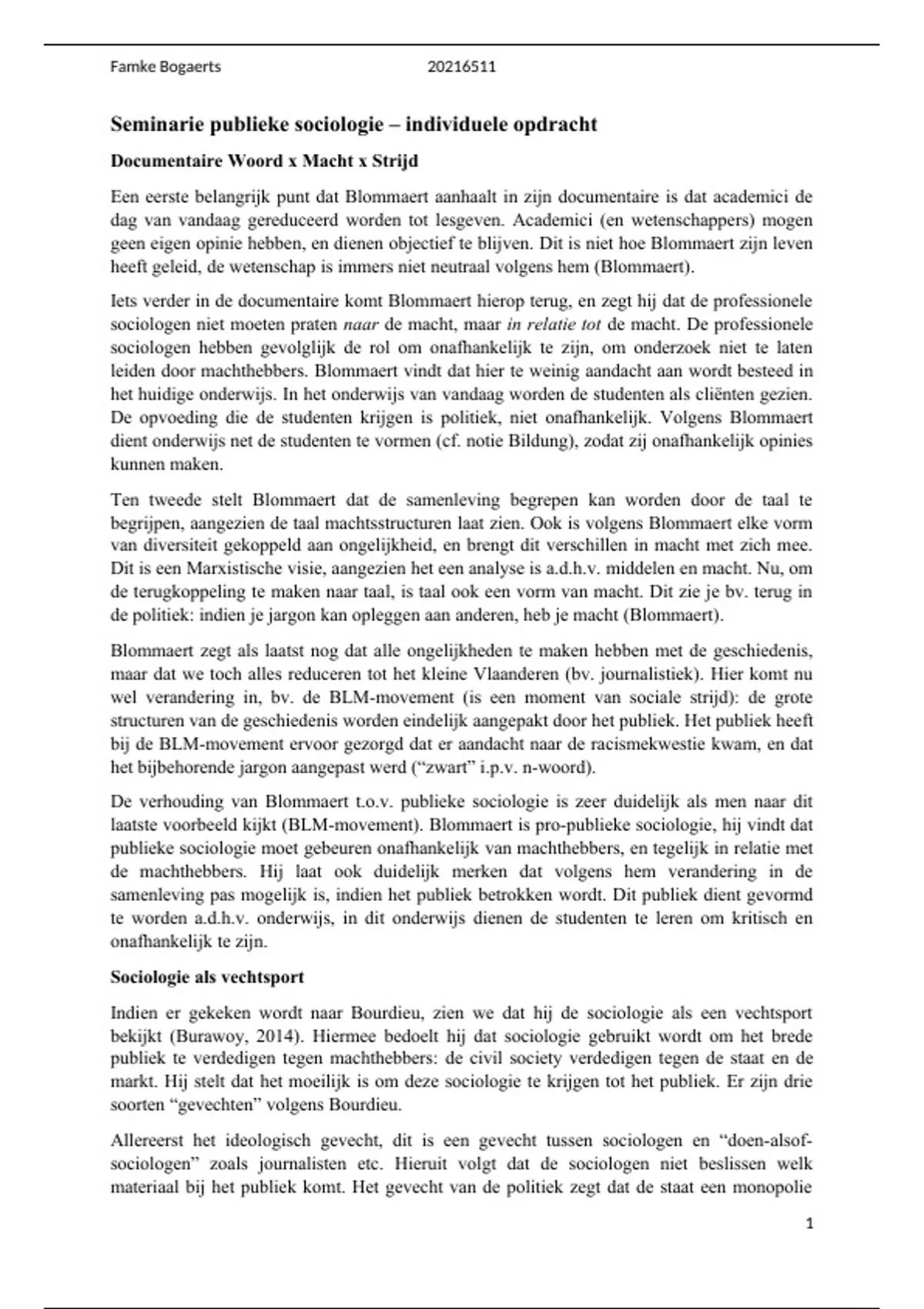 laatste voorbeeld kijkt (BLM-movement). Blommaert is pro-publieke sociologie, hij vindt dat