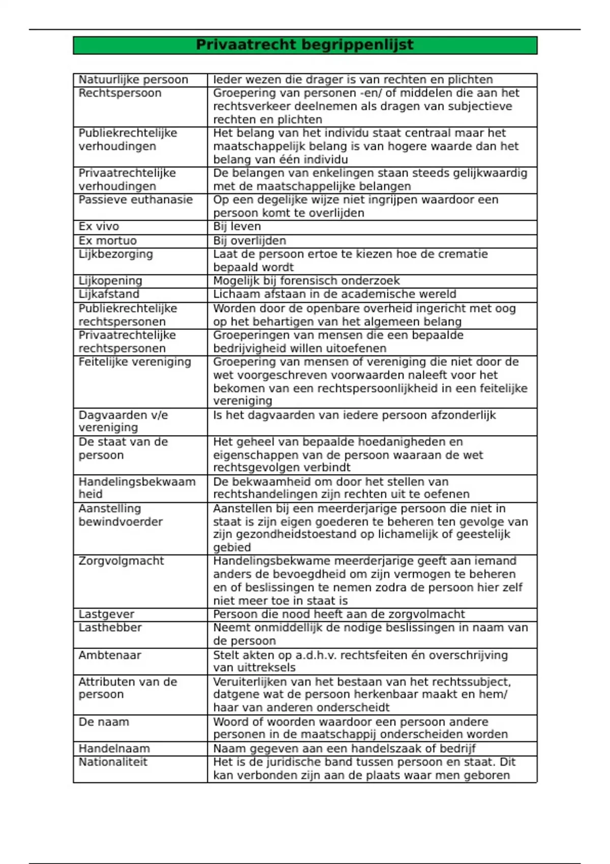 Privaatrecht begrippenlijst