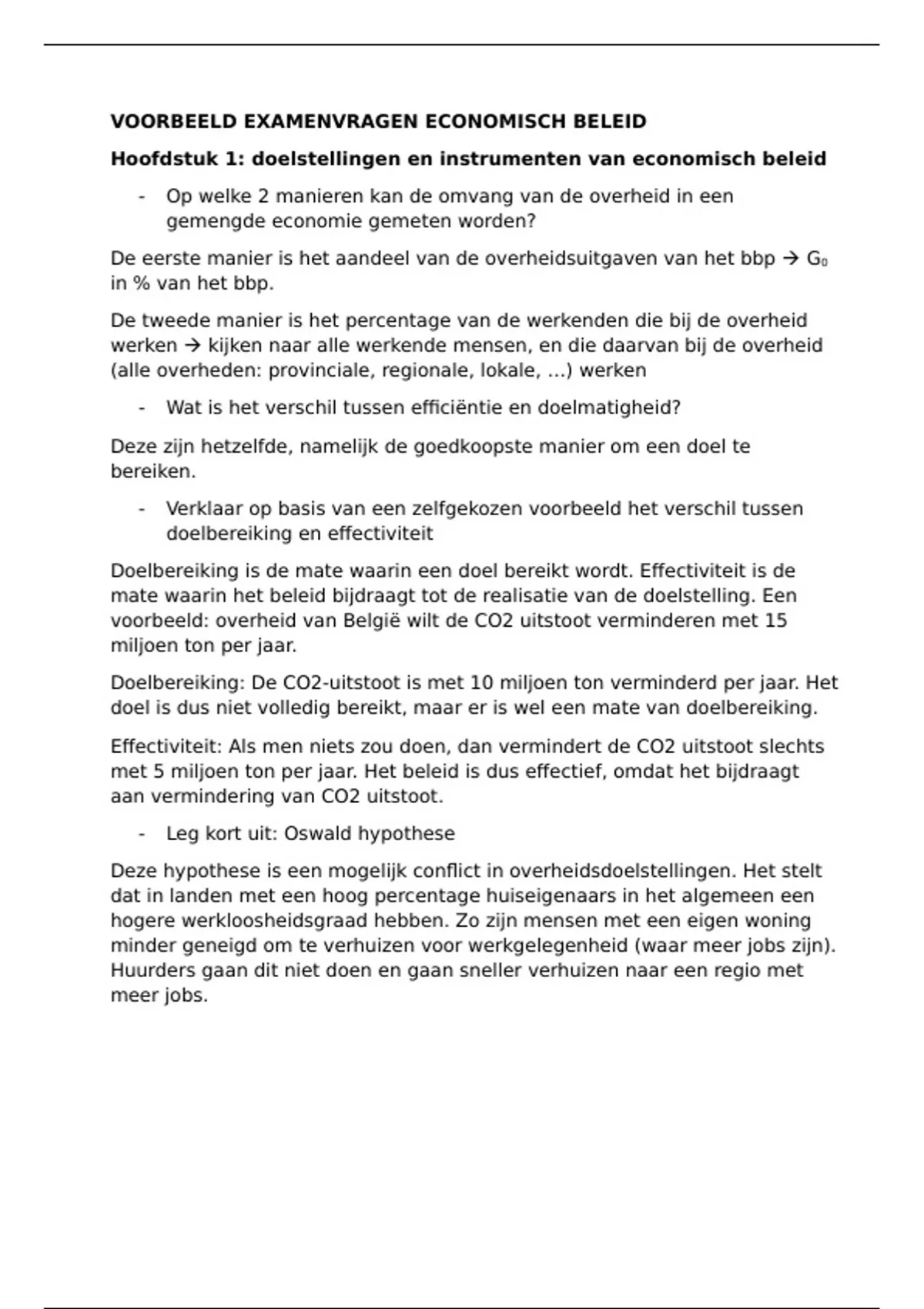 VOORBEELD EXAMENVRAGEN ECONOMISCH BELEID