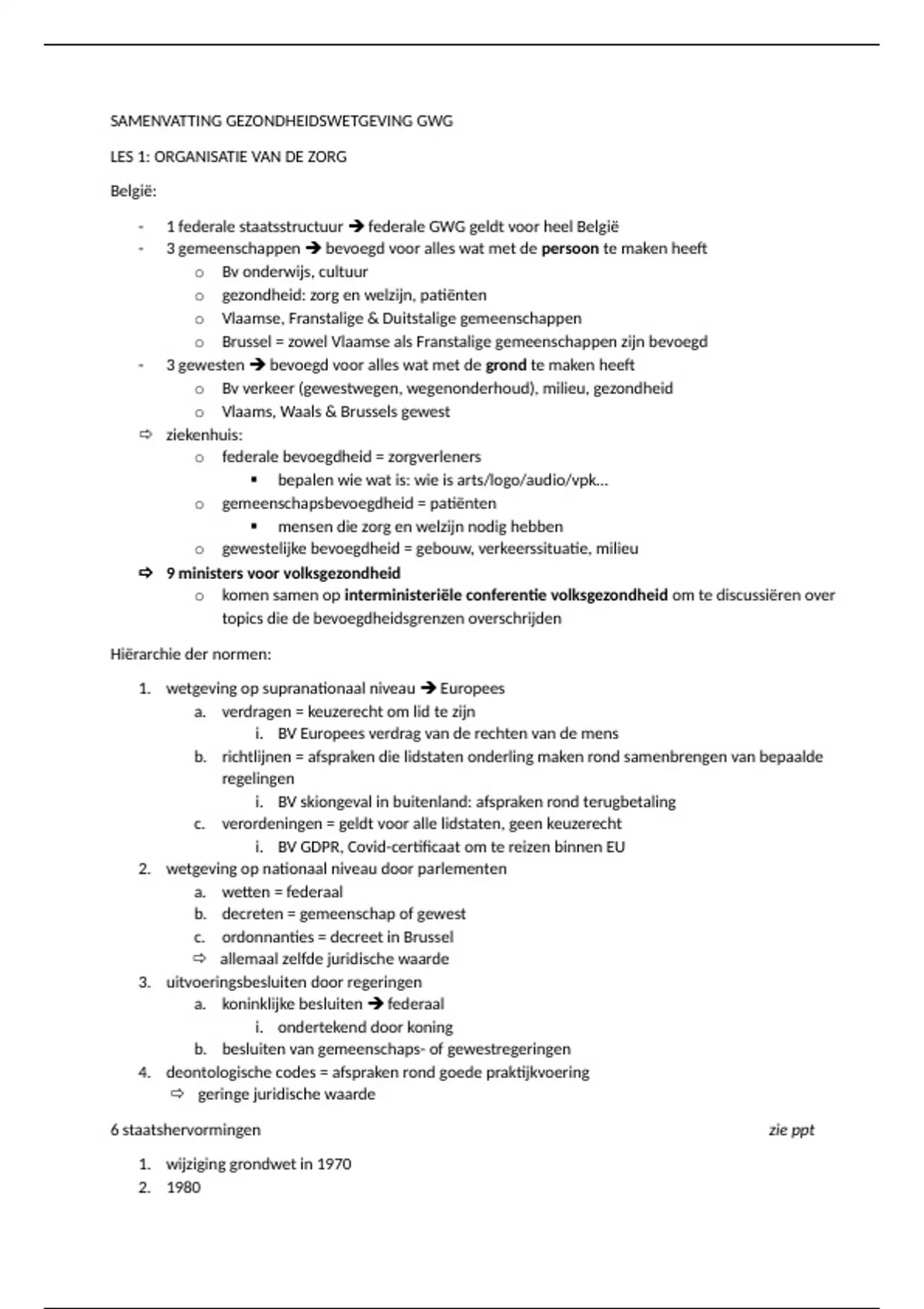 SAMENVATTING GEZONDHEIDSWETGEVING GWG