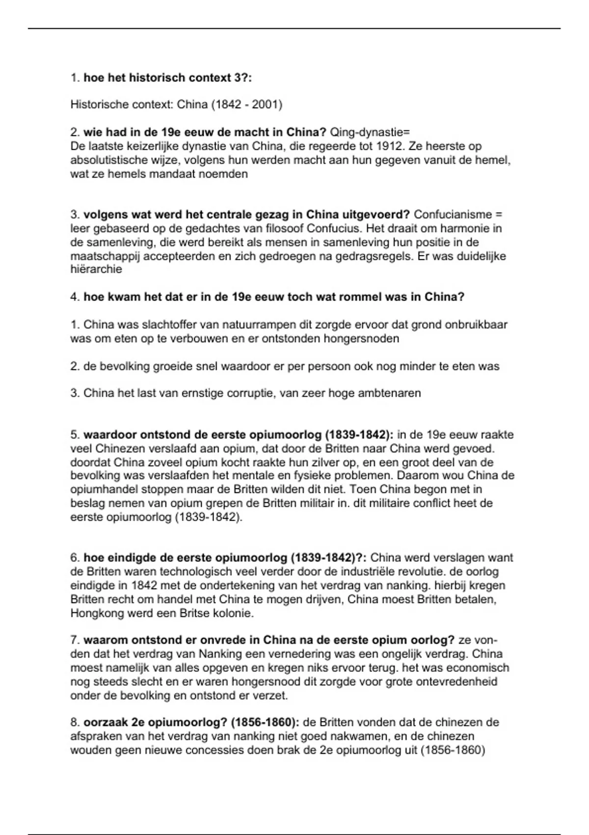 6. hoe eindigde de eerste opiumoorlog (1839-1842)?: China werd verslagen want