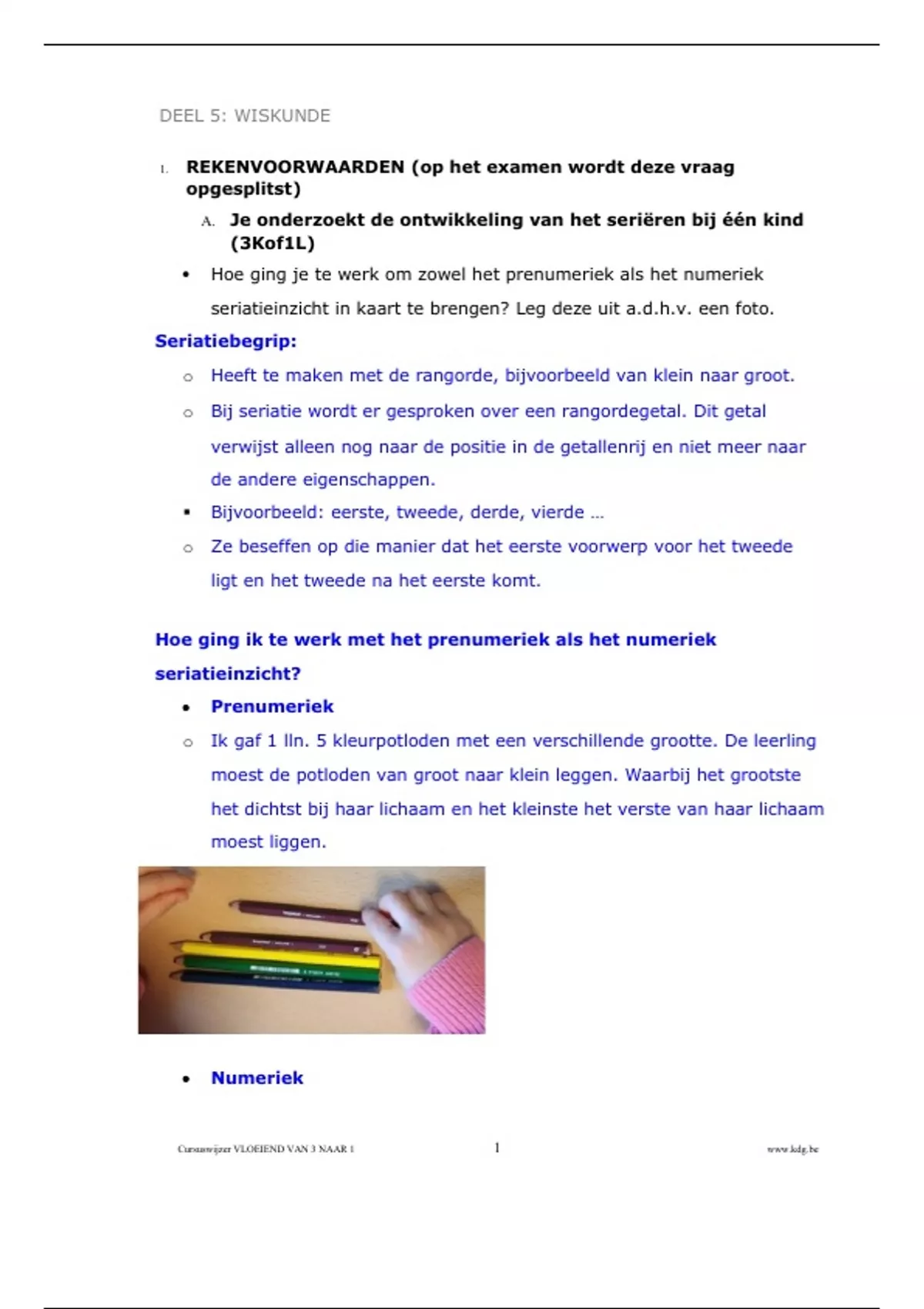 o Ik gaf 1 lln. 5 kleurpotloden met een verschillende grootte. De leerling
