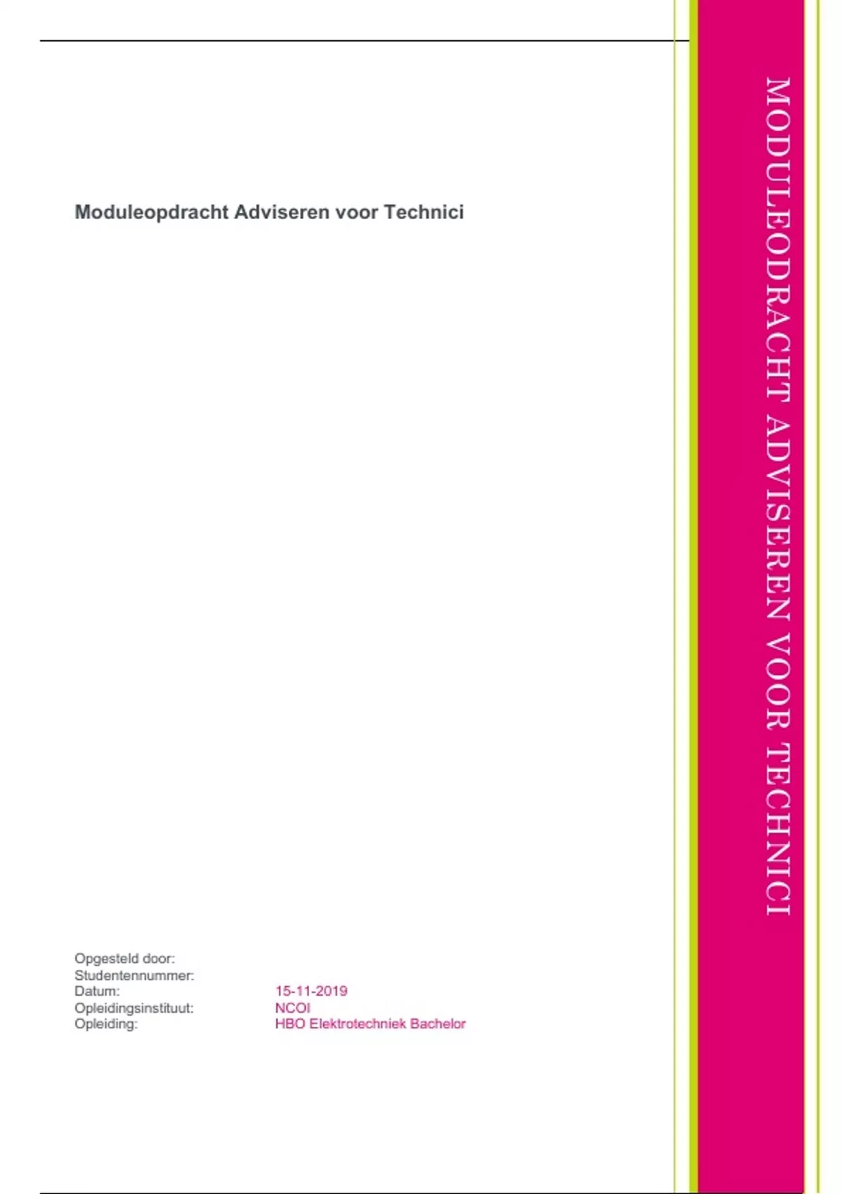 uit van de Bachelor HBO elektrotechniek die ik volg bij de NCOI. Voor deze moduleopdracht maak ik een