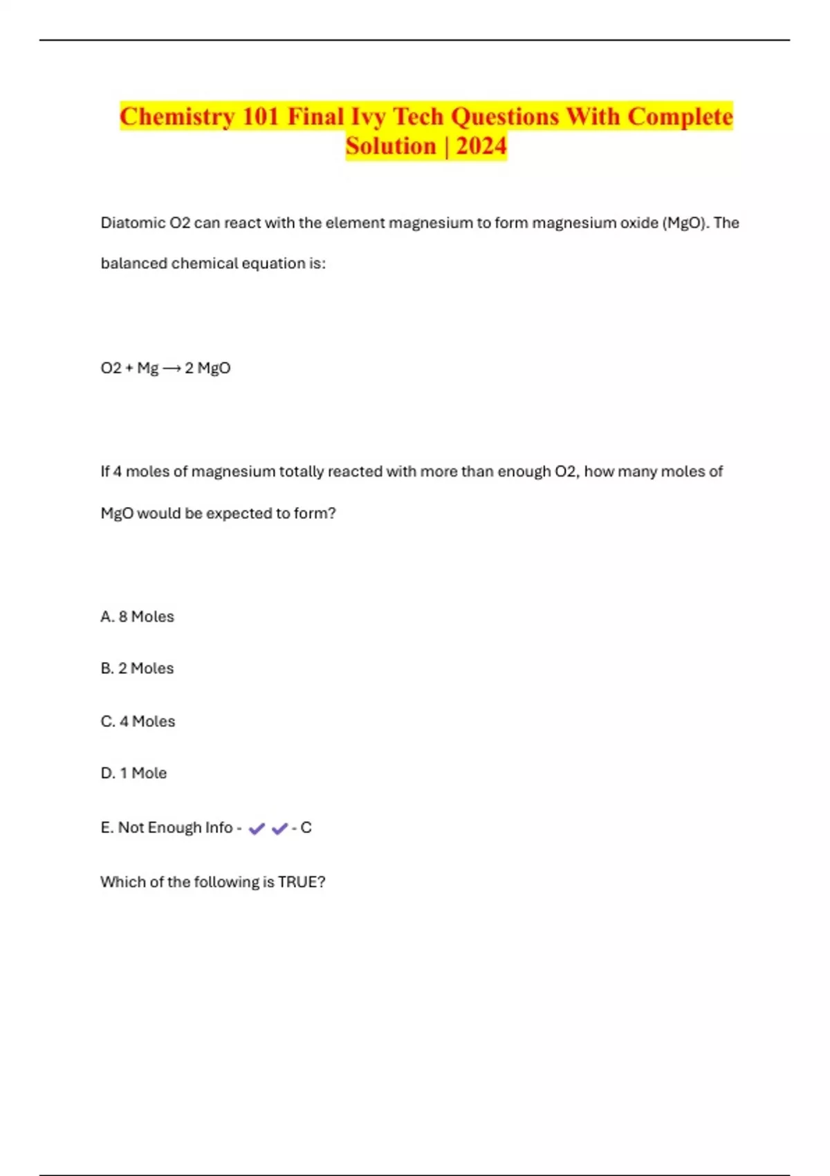 If 4 moles of magnesium totally reacted with more than enough O2, how many moles of