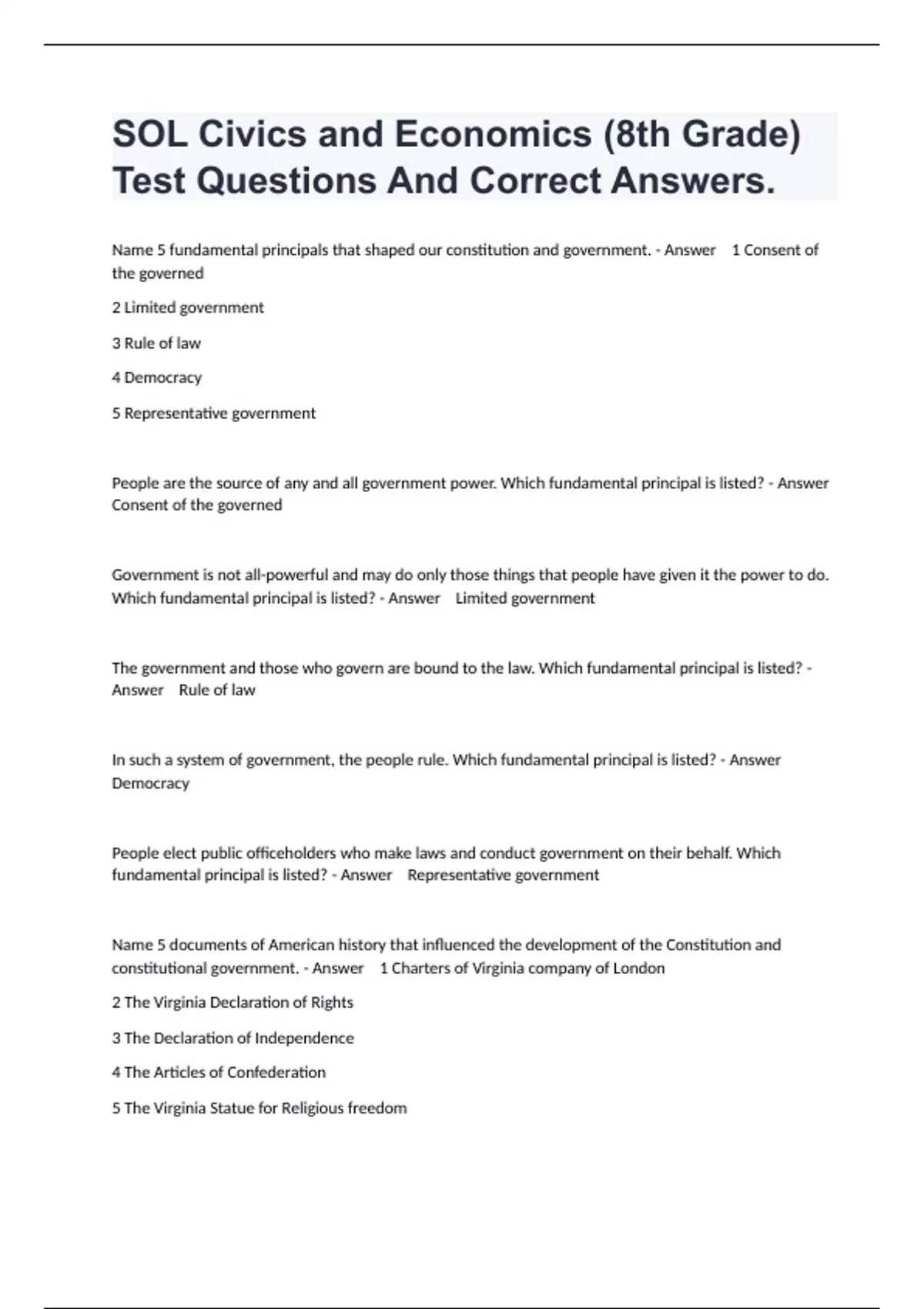SOL Civics and Economics (8th Grade) Test Questions And Correct Answers.