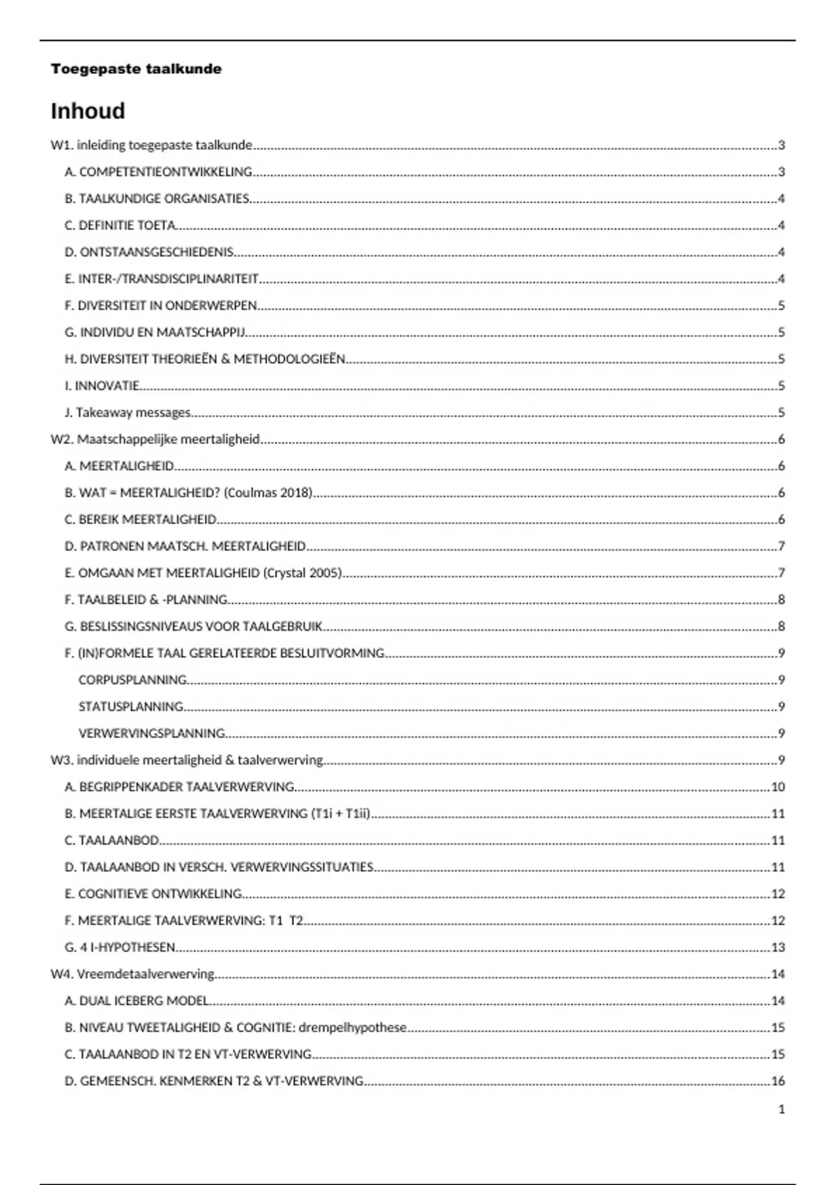 W1. INLEIDING TOEGEPASTE TAALKUNDE
