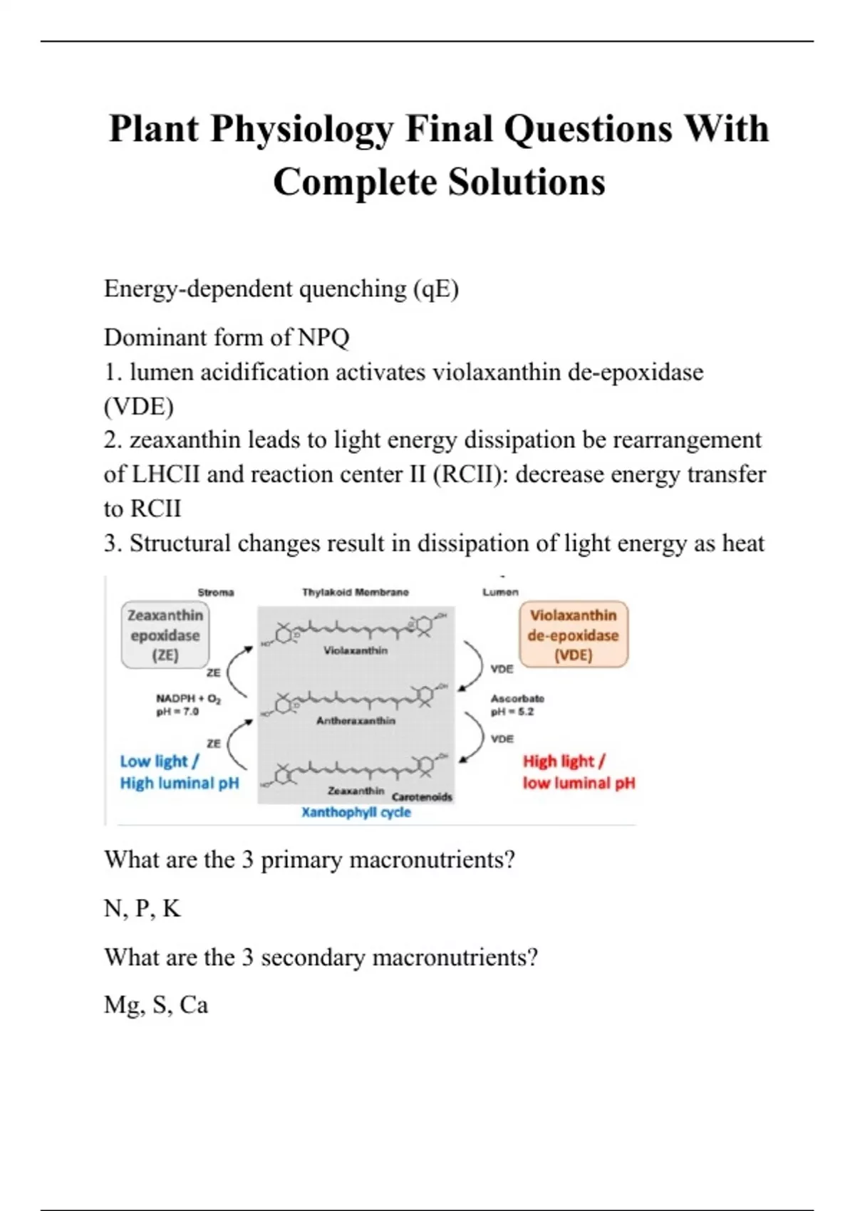 Plant Physiology Final Questions With Complete Solutions