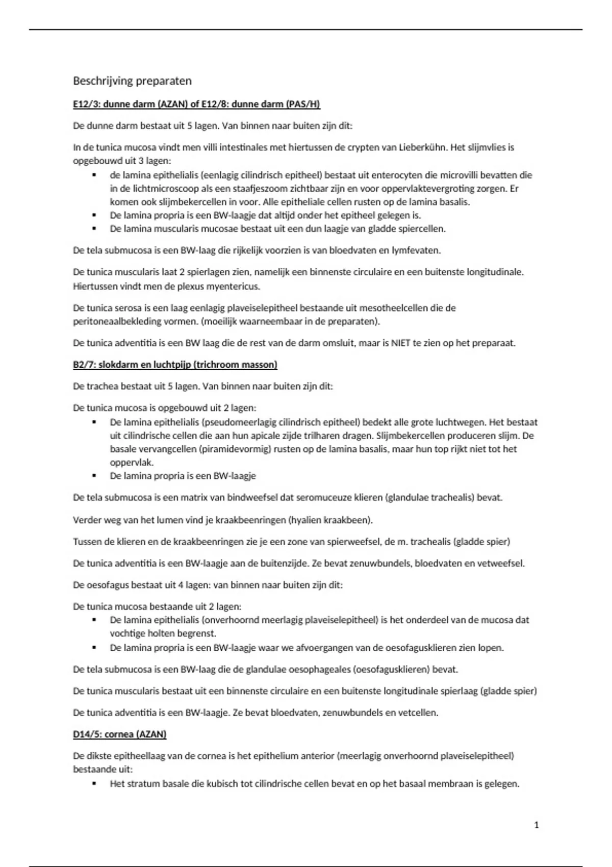 Samenvatting histologie: beschrijving preparaten