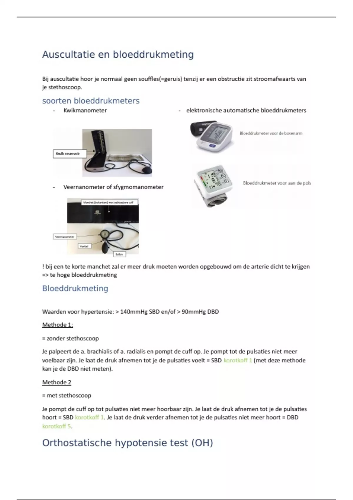 voelbaar zijn. Je laat de druk afnemen tot je de pulsaties voelt = SBD korotkoff 1 (met deze methode
