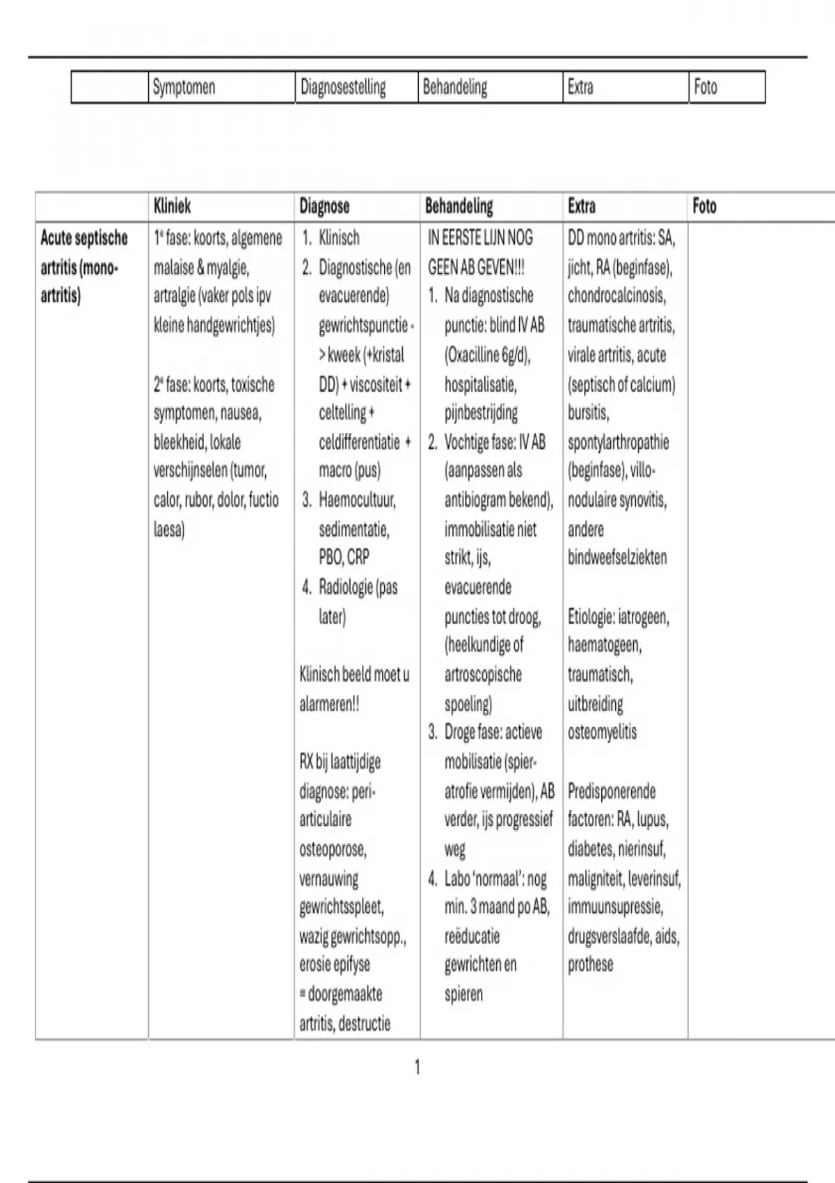 Acute septische 1e fase: koorts, algemene 1. Klinisch IN EERSTE LIJN NOG DD mono artritis: SA,