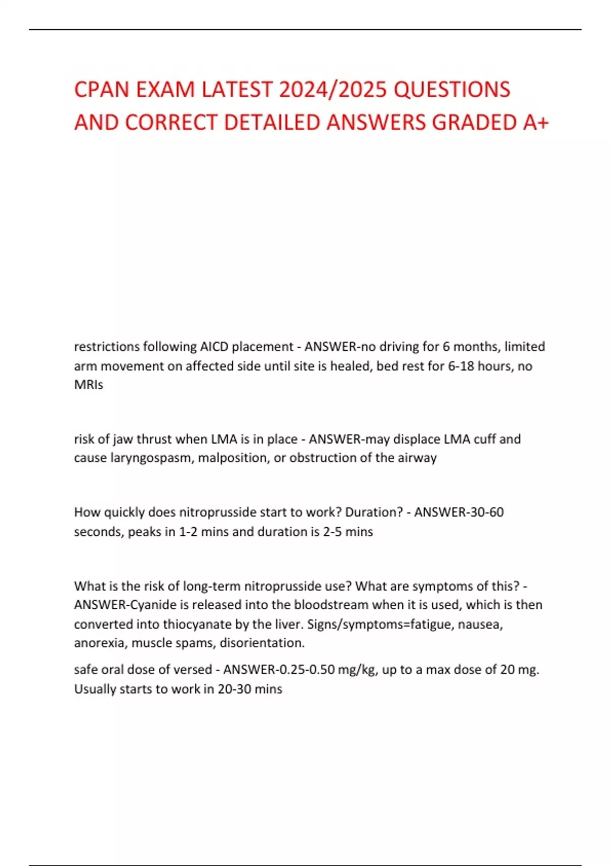 CPAN EXAM LATEST 2024/2025 QUESTIONS AND CORRECT DETAILED ANSWERS GRADED A+ CPAN EXAM LATEST 2024/2025 QUESTIONS AND CORRECT DETAILED ANSWERS GRADED A+