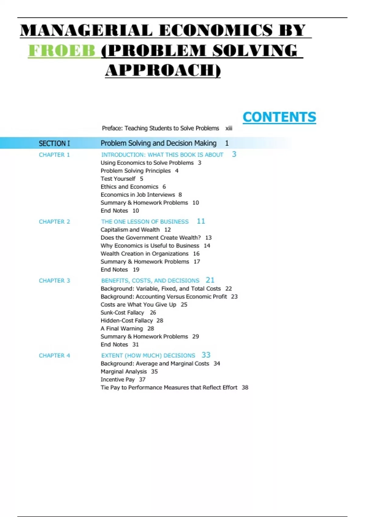 MANAGERIAL ECONOMICS BY FROEB (PROBLEM SOLVING APPROACH)